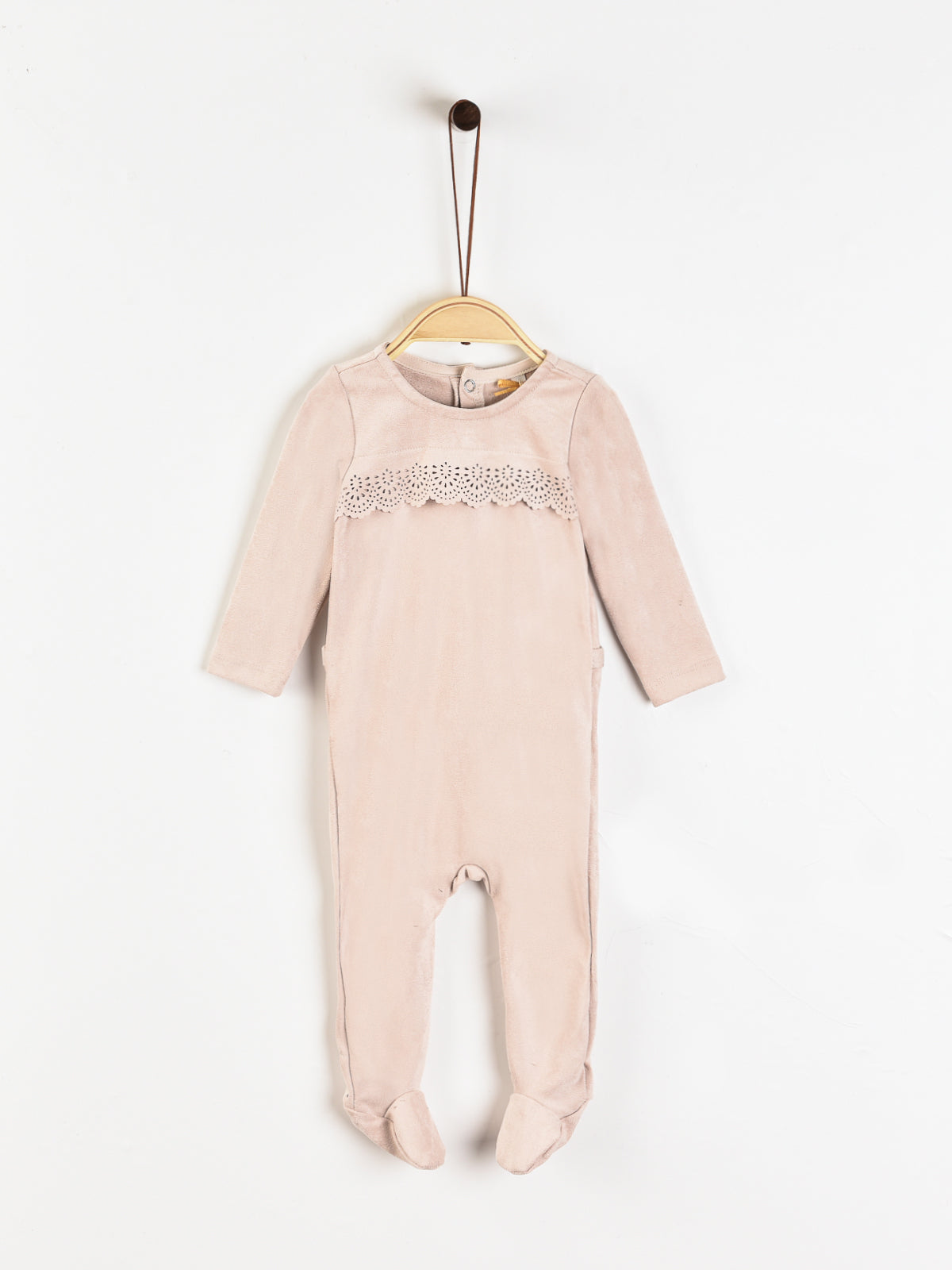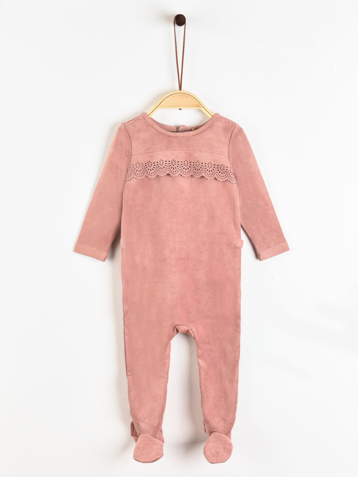 אוברול תחרה דמוי זמש - ורוד