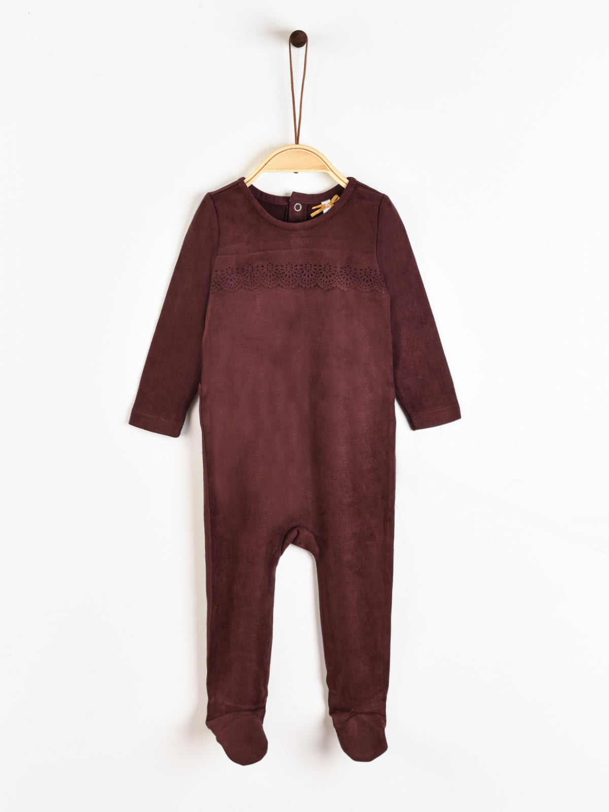 אוברול תחרה דמוי זמש - בורדו