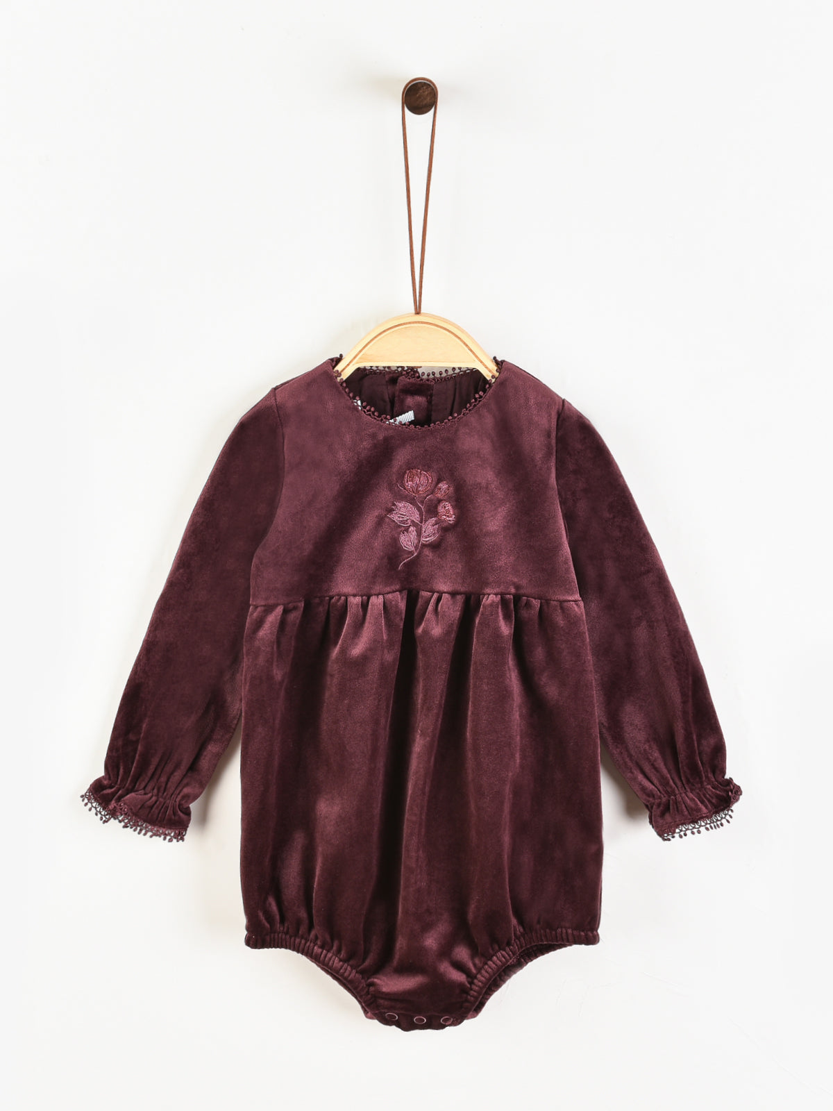 אוברול קטיפה עם רקמה - בורדו