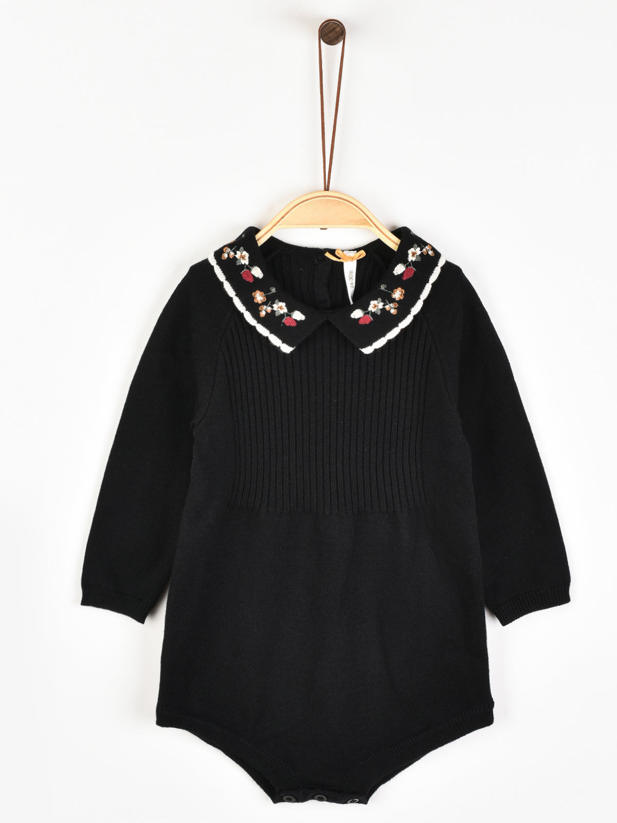 אוברול עם צווארון רקמה - שחור