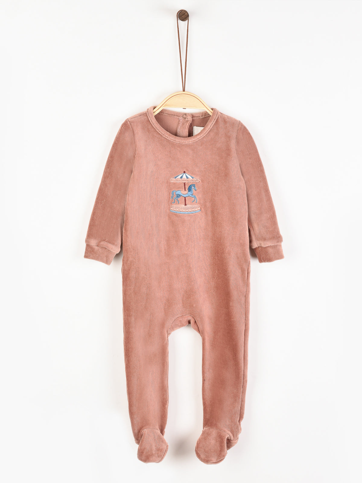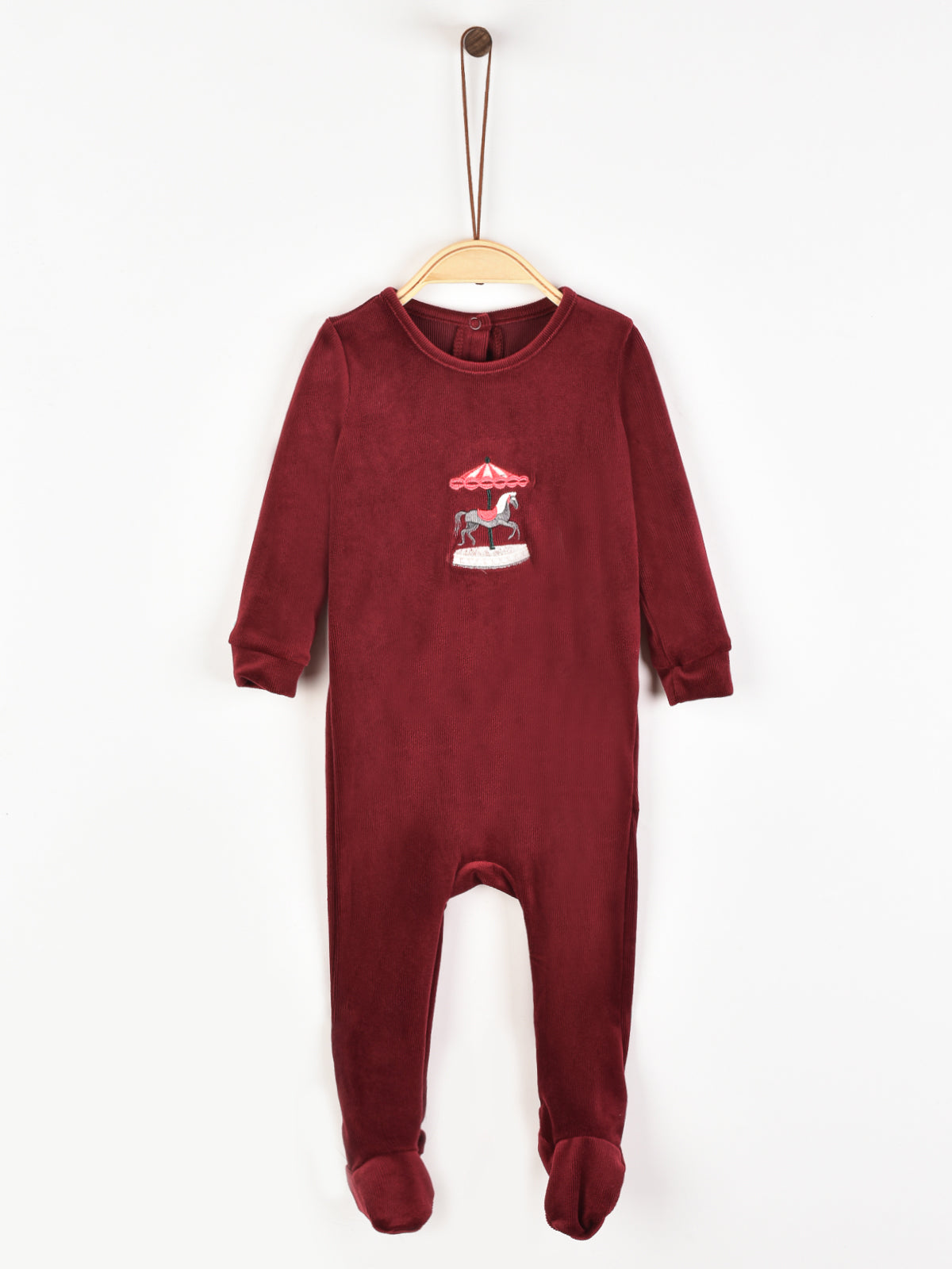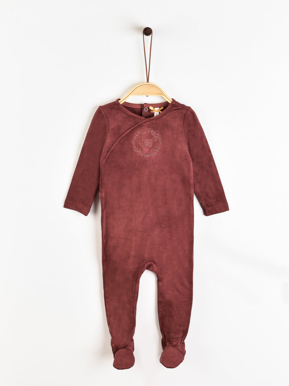 אוברול סריג קטיפתי עם בגד גוף - בורדו