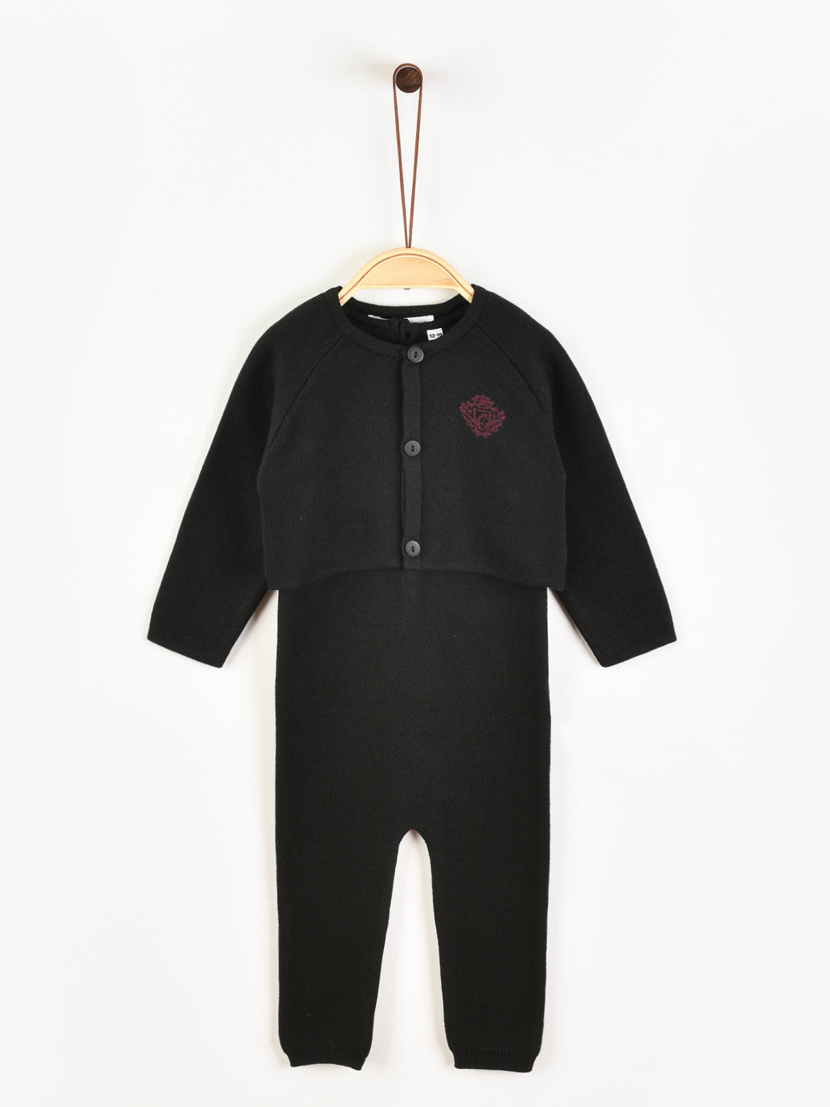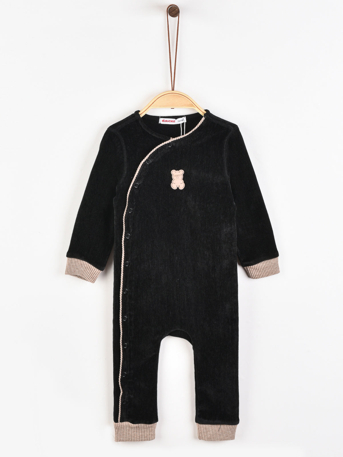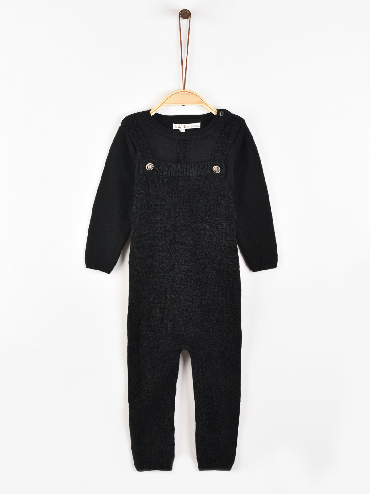 אוברול סריג קטיפתי עם בגד גוף - שחור