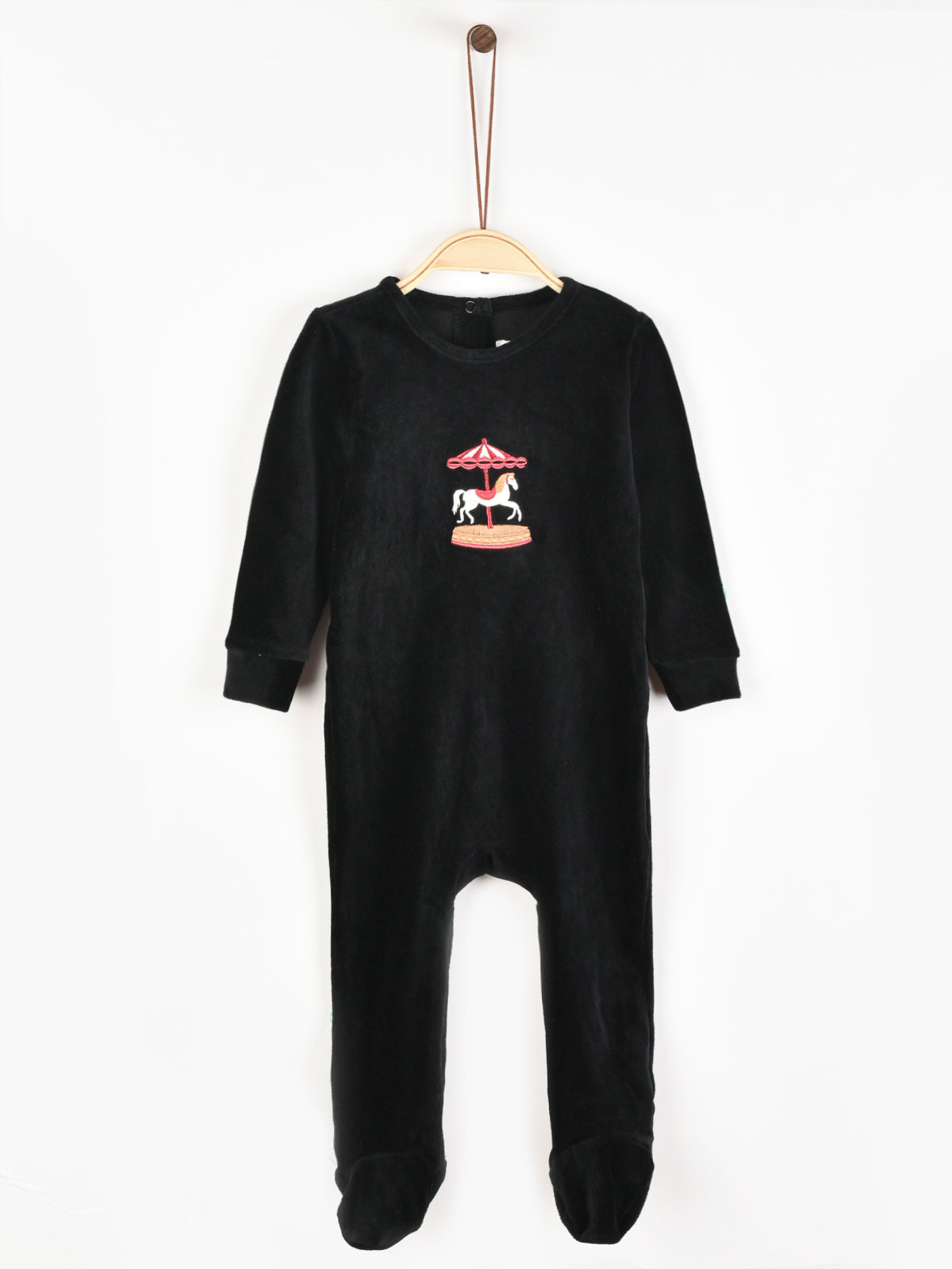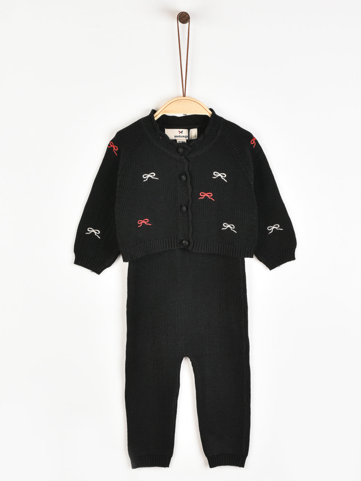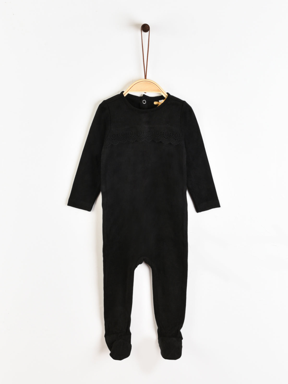 אוברול סריג קטיפתי עם בגד גוף - שחור