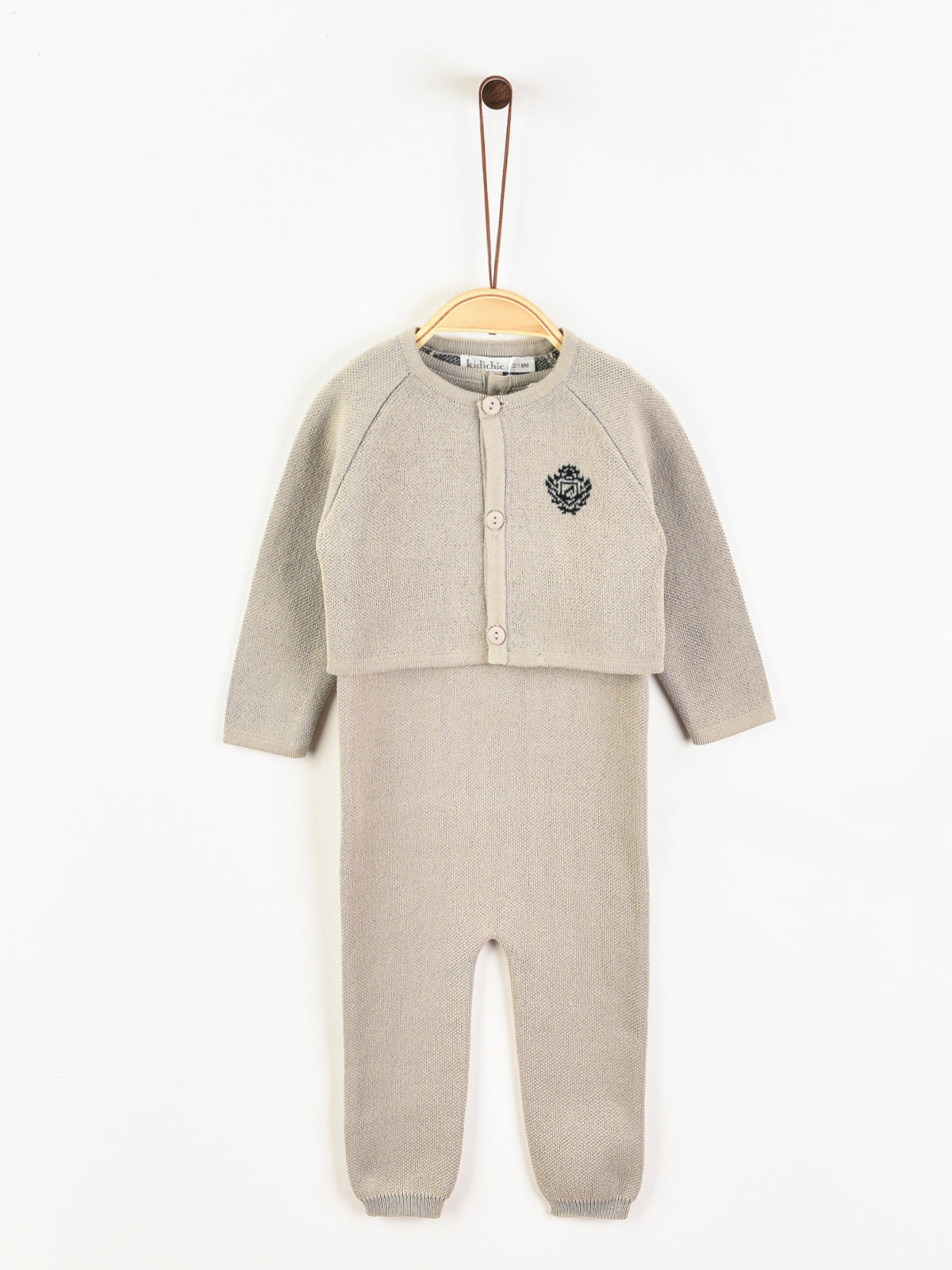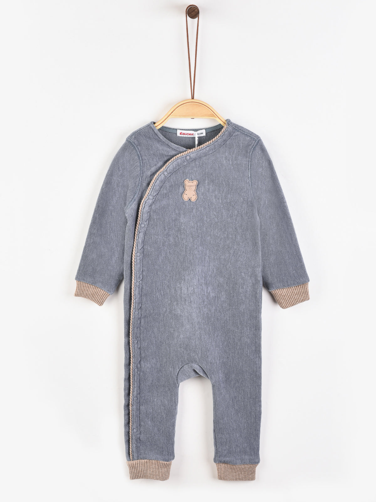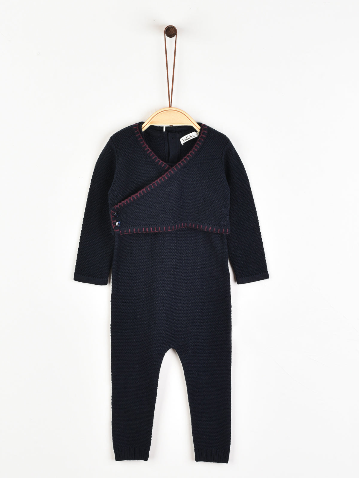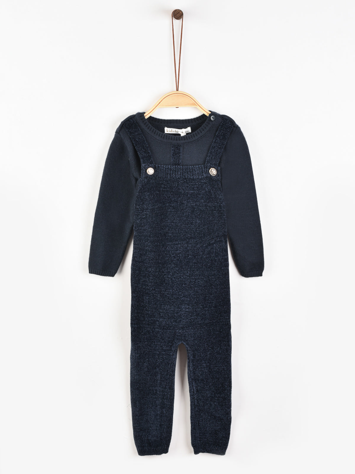 אוברול סריג קטיפתי עם בגד גוף - נייבי
