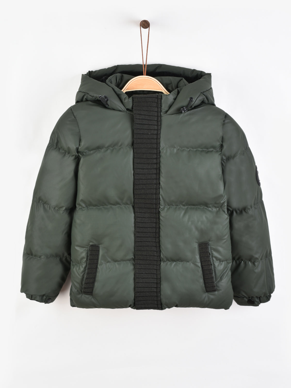 מעיל פאפר נפוח בסיומת ריב, עם שני כיסים צדדיים.
