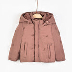 מעיל נפוח לתינוקות, עם כובע ושני כיסים צדדיים.