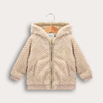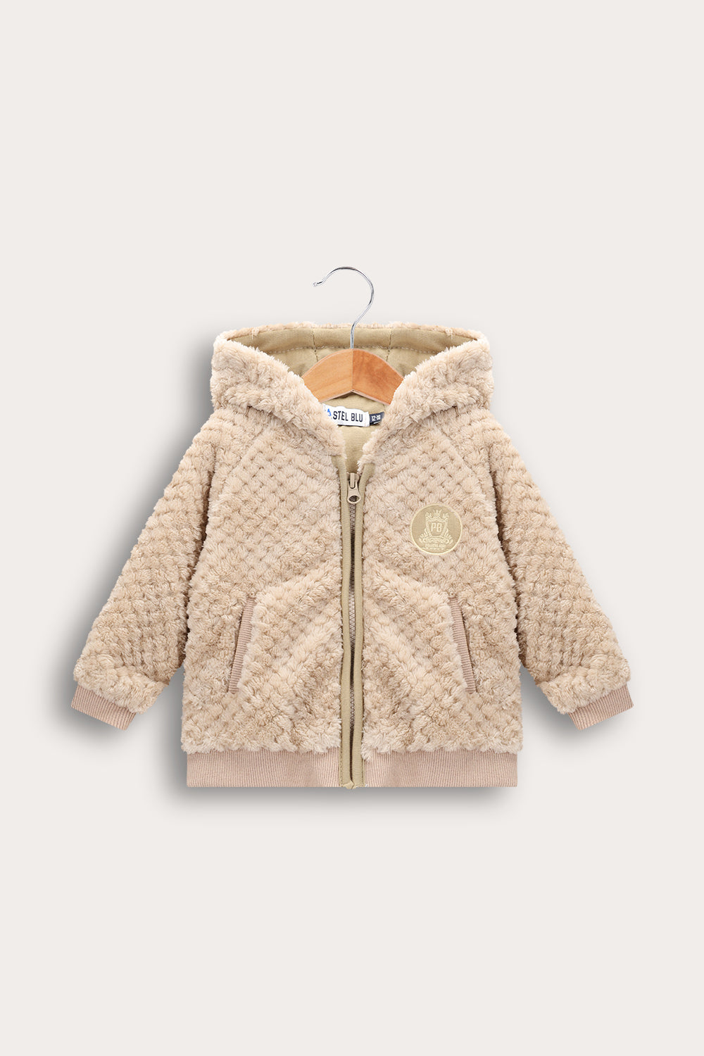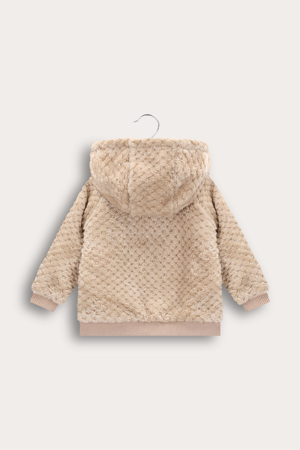 קפוצ'ון פליס לתינוקות, עם רוכסן וכיסים וסיומת ריב לשמירה על חום גוף.