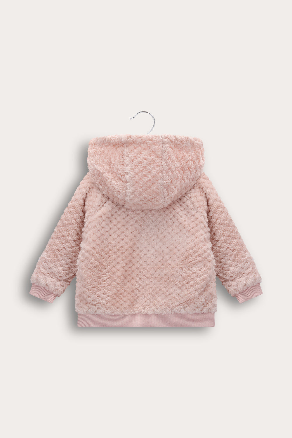 קפוצ'ון פליס לתינוקות, עם רוכסן וכיסים וסיומת ריב לשמירה על חום גוף.