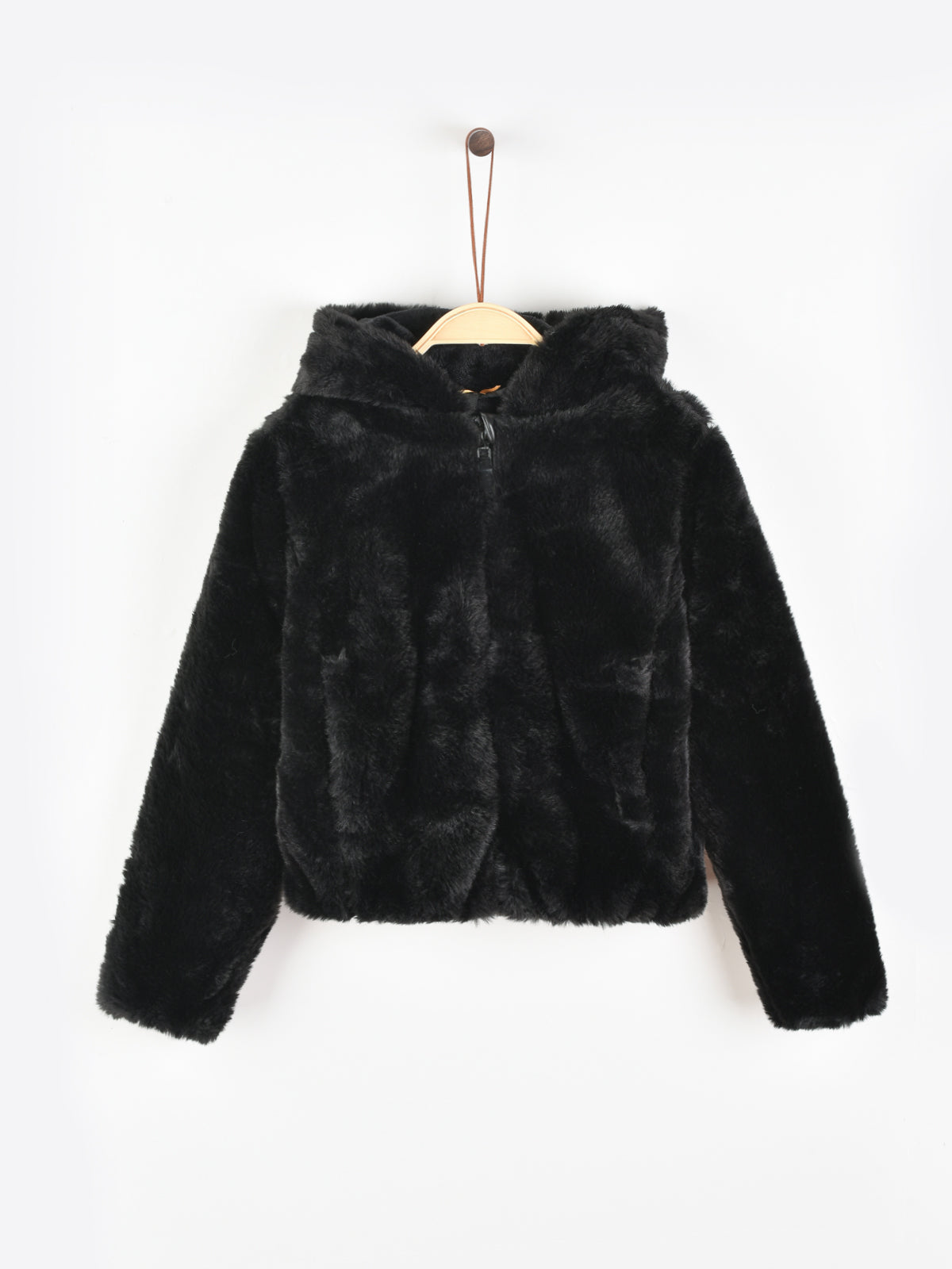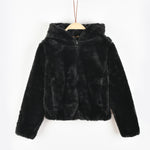 ז'קט פרוותי עם רוכסן - שחור