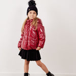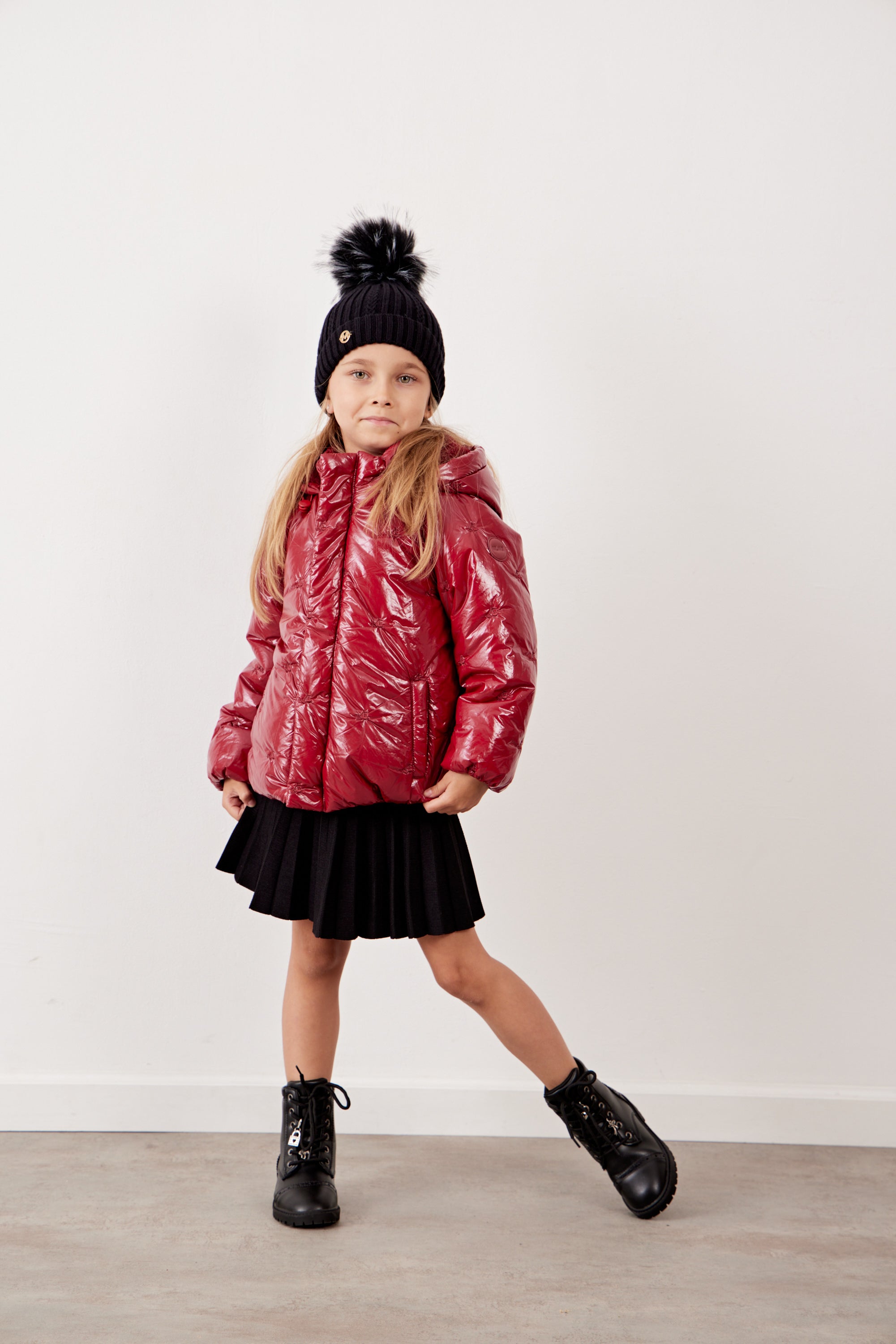 מעיל אופנתי לבנות, במראה נפוח עם גימור מבריק.