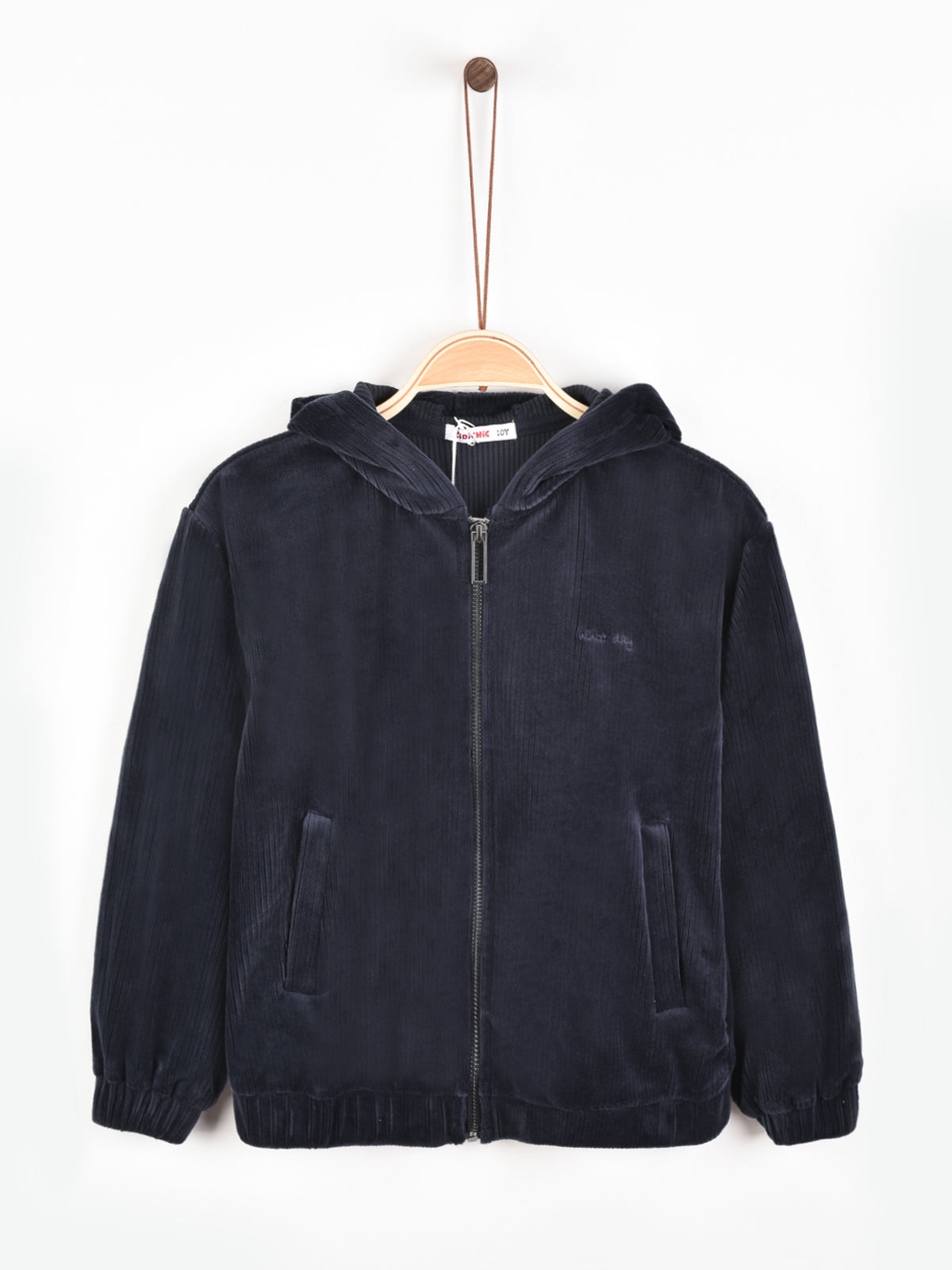 ז'קט קטיפה עם קפוצ'ון - נייבי