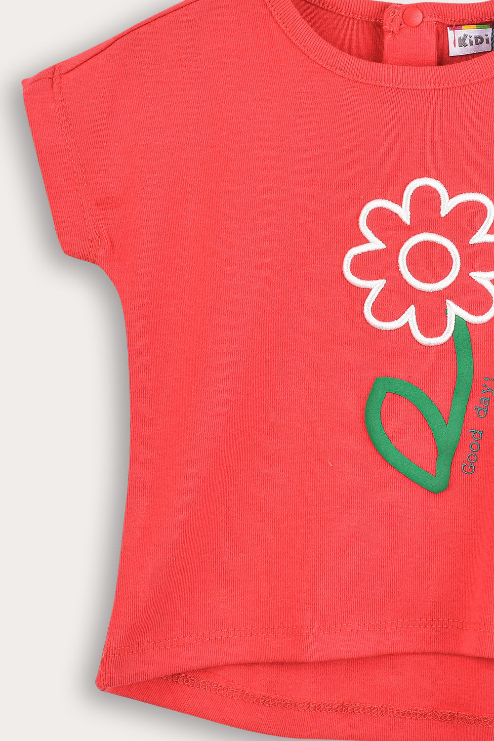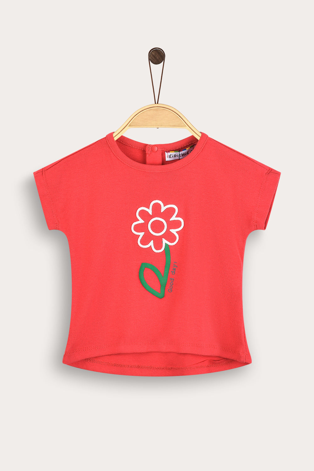 חולצת טישירט לתינוקת, עשויה מבד ריב נעים וגמיש - לנוחות מירבית לאורך כל היום. הגזרה כוללת שרוולים קצרים, פתח צוואר עגול וסגירת תיקתקים להלבשה מהירה וקלה. מוטיב של פרח בחלק הקדמי - משלים הופעה קייצית ונאה, המתאימה לשימוש יום יומי ולטיולים עם הקטנטנות.