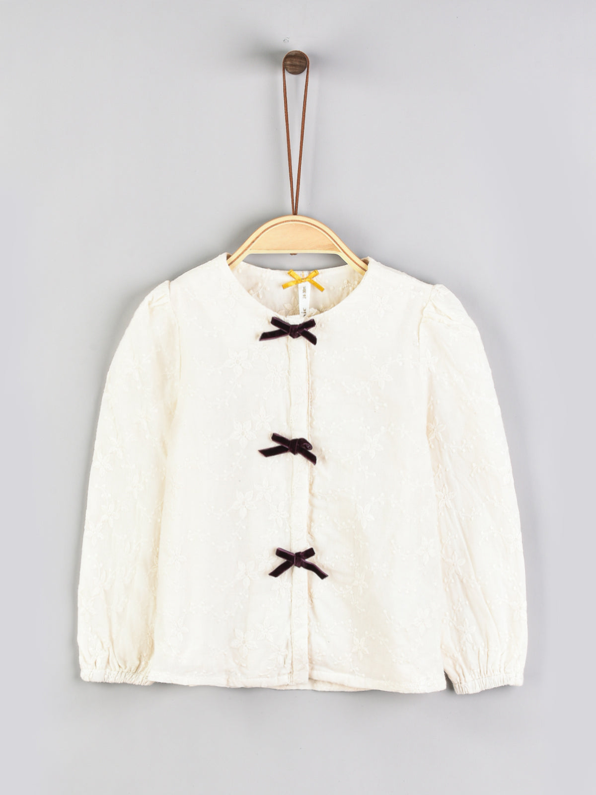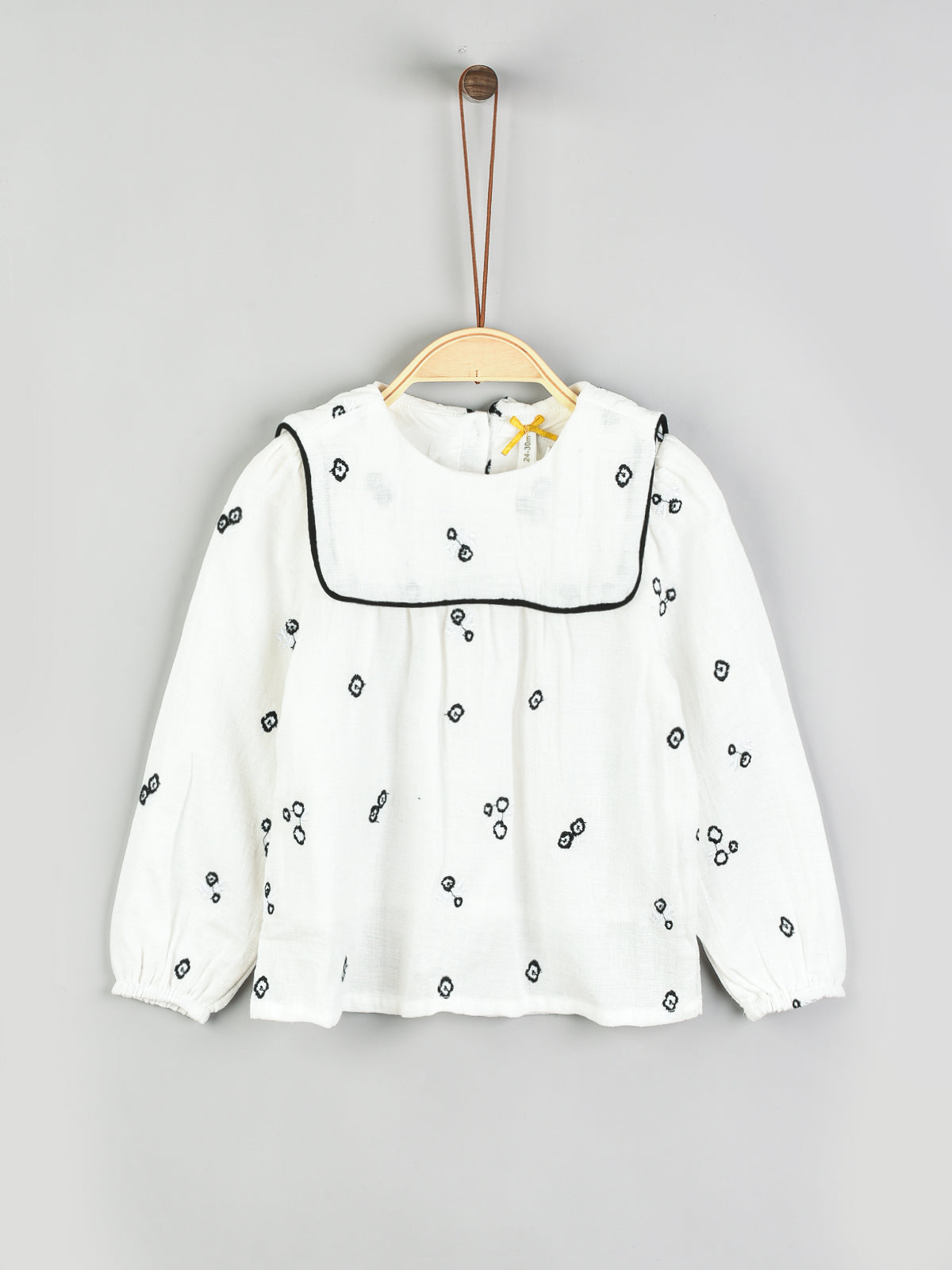 חולצת רקמה עם פפיונים קטיפה - שחור