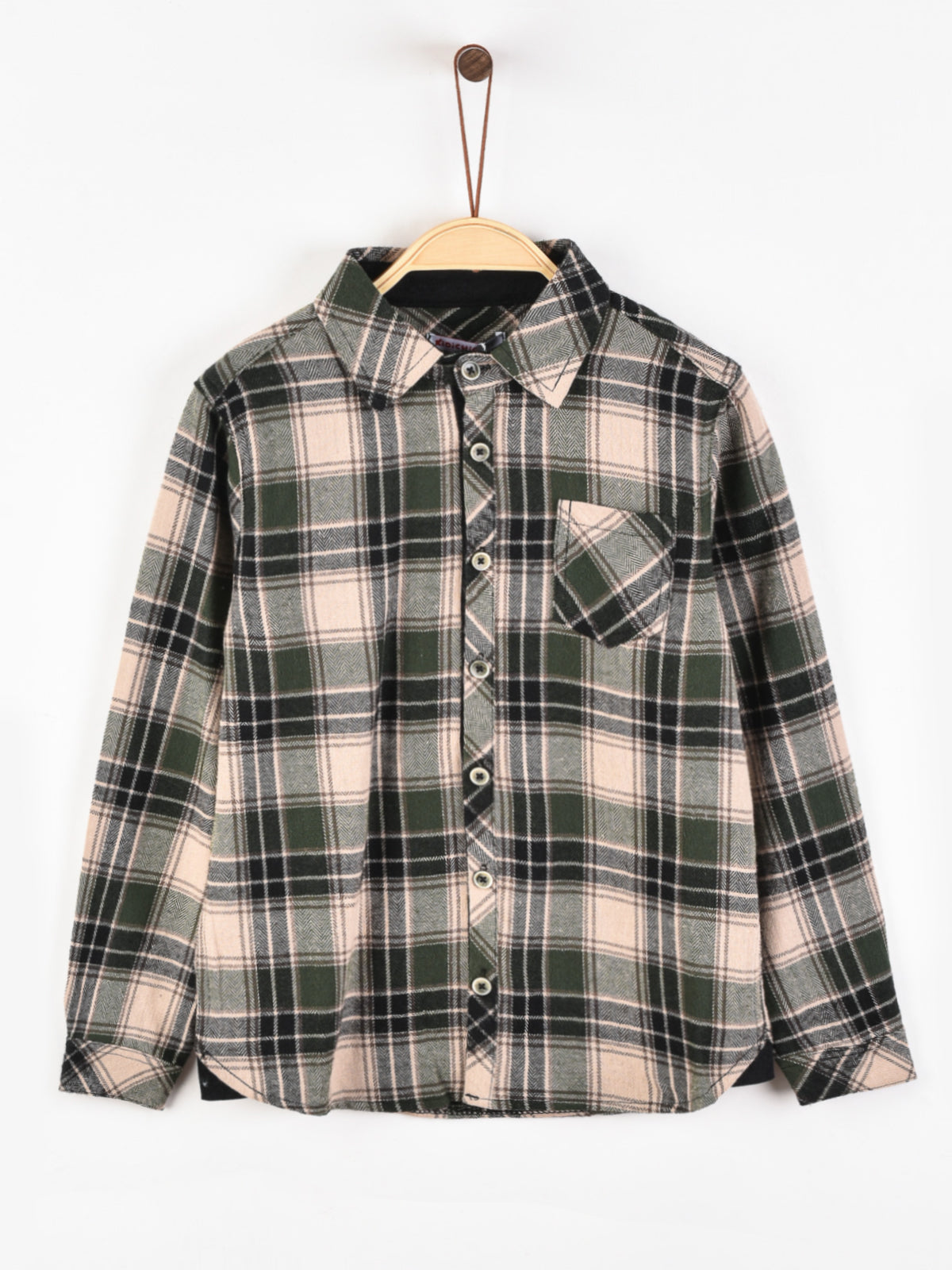 חולצת משבצות מכופתרת.