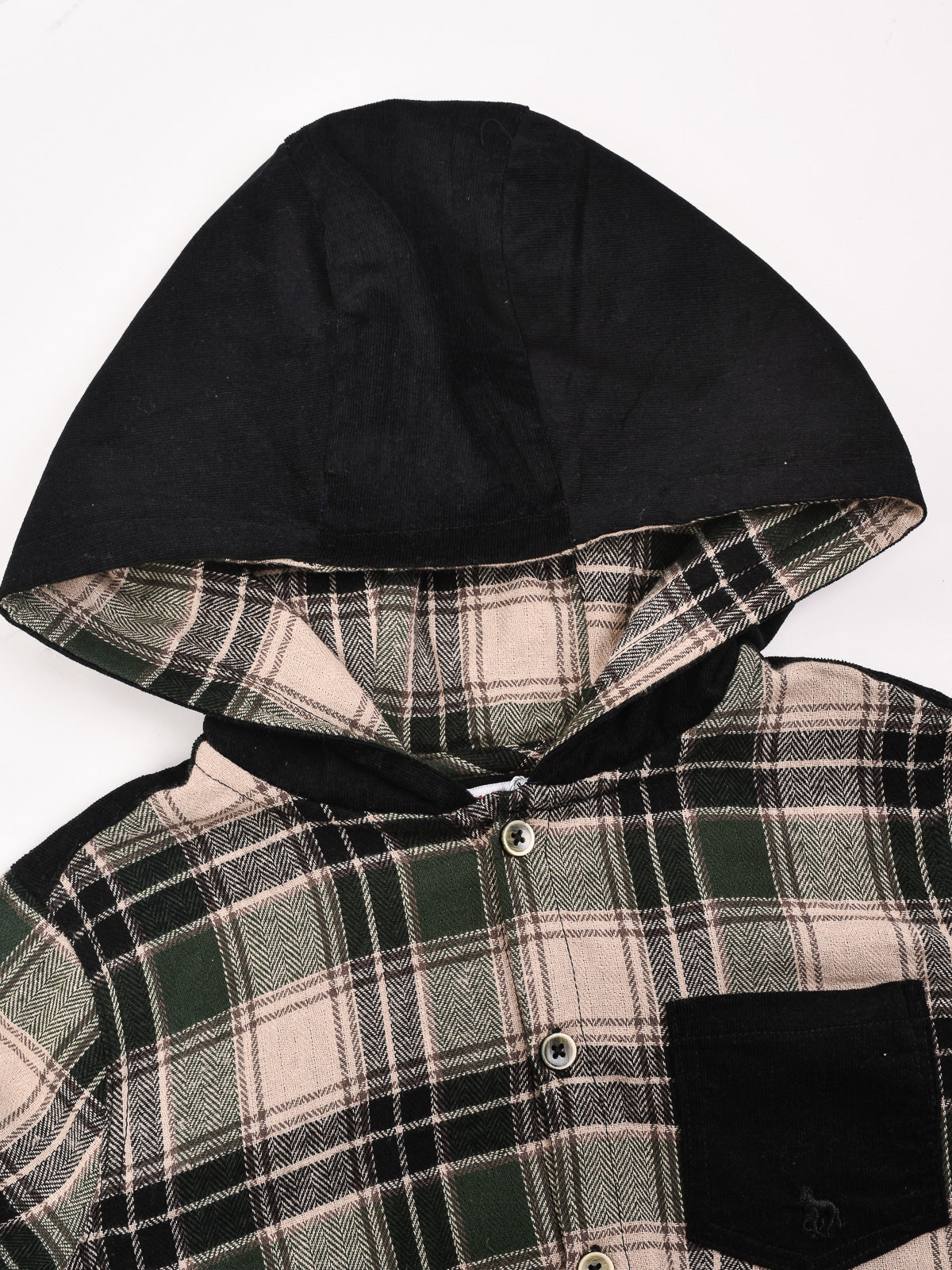 קפוצ'ון משבצות עם כפתורים - ירוק