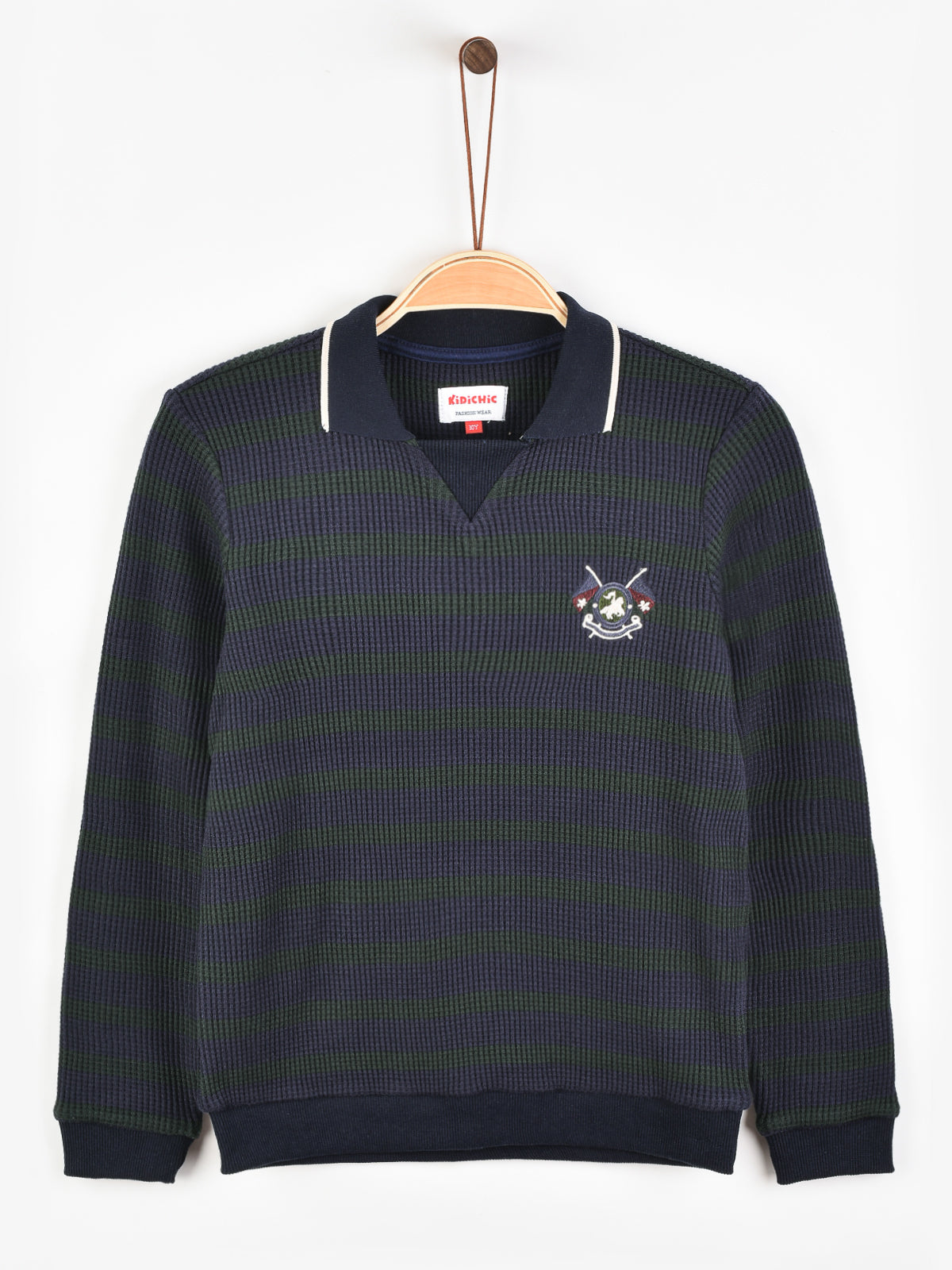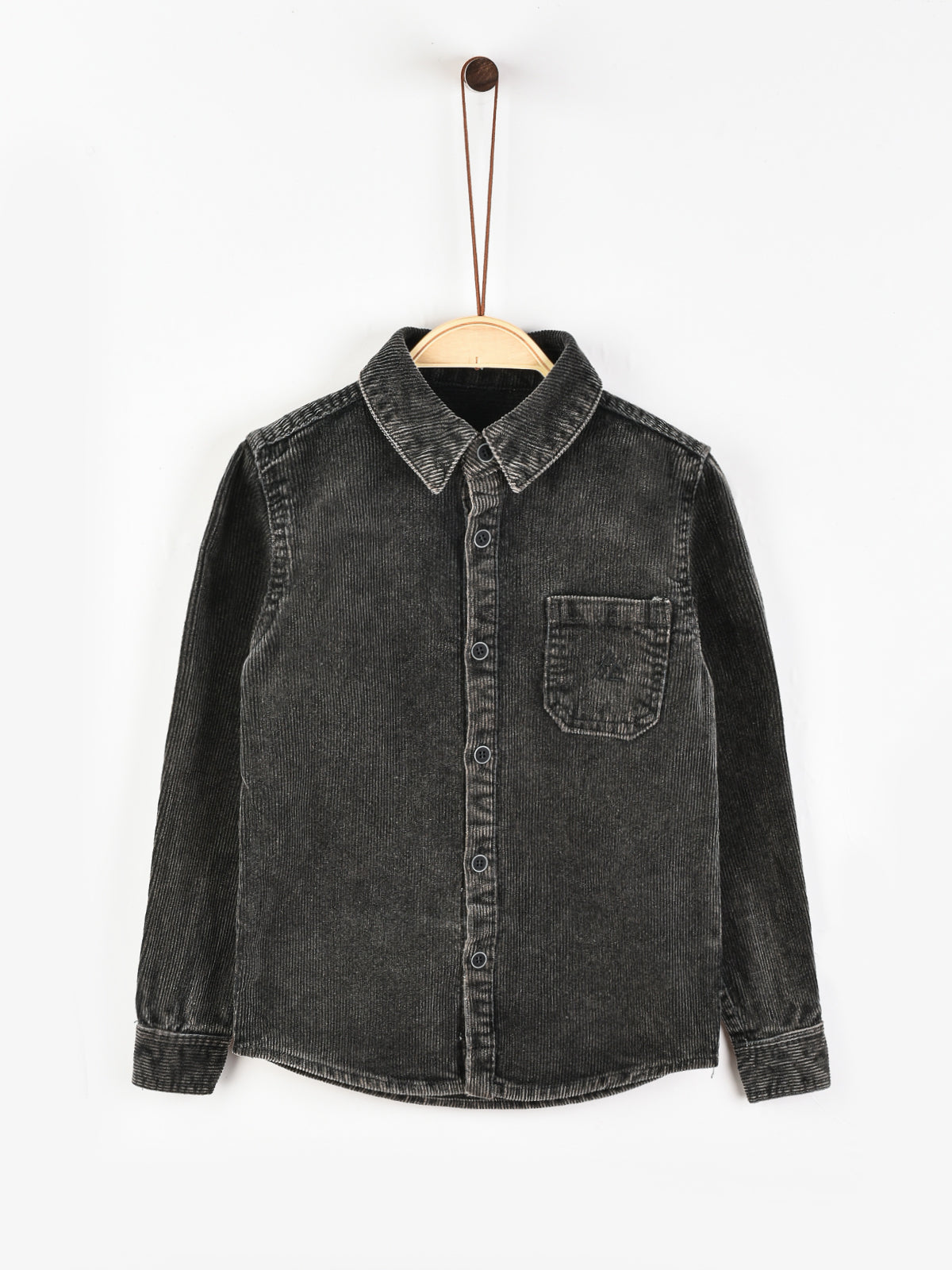 חולצה מכופתרת צווארון קטיפה - ירוק