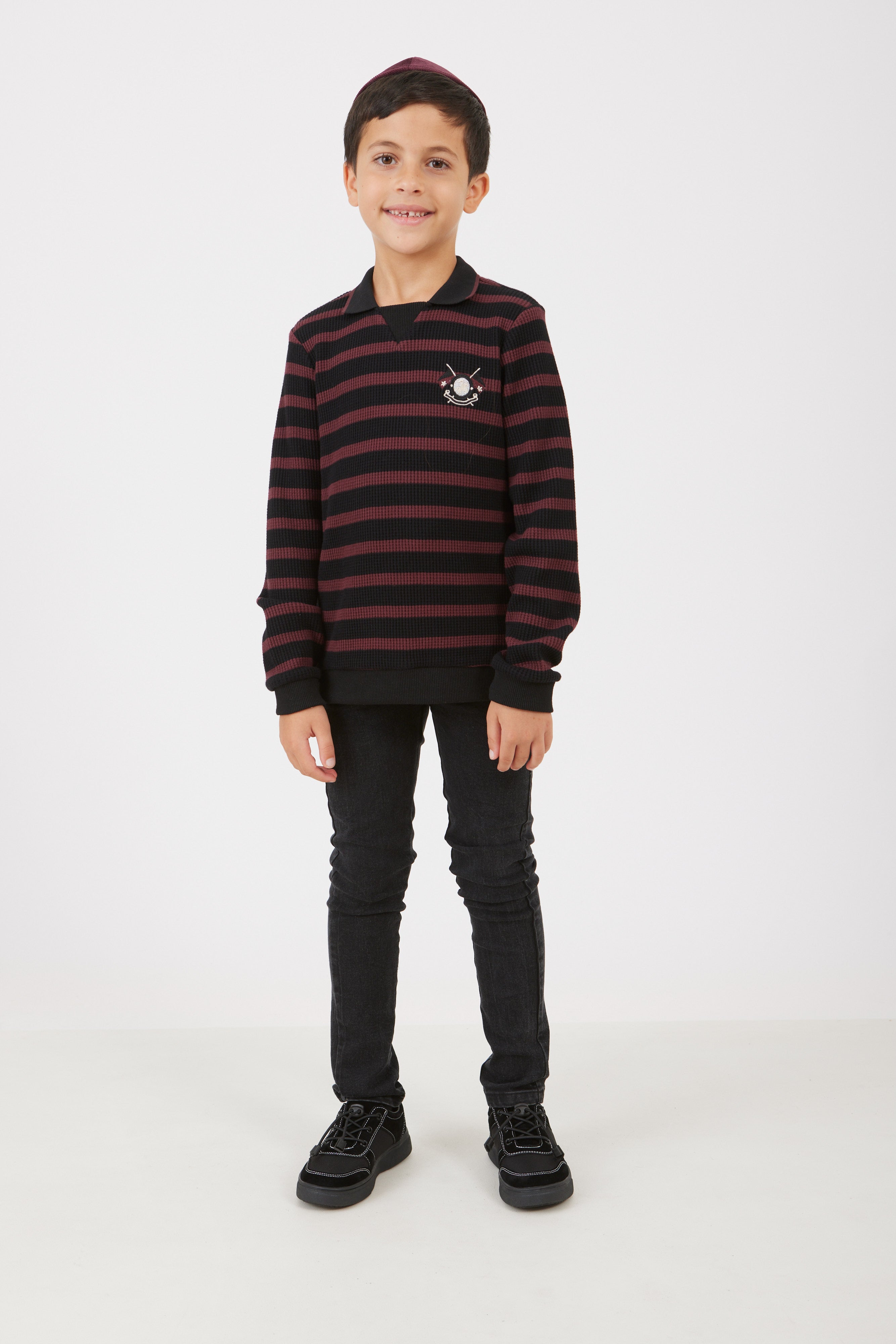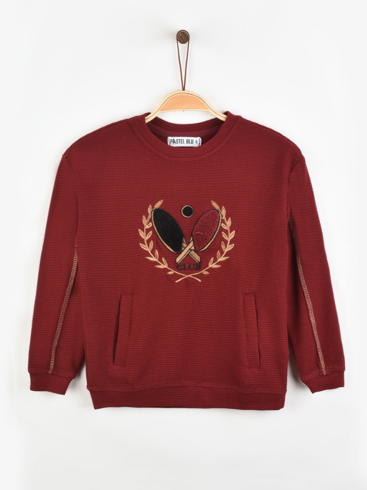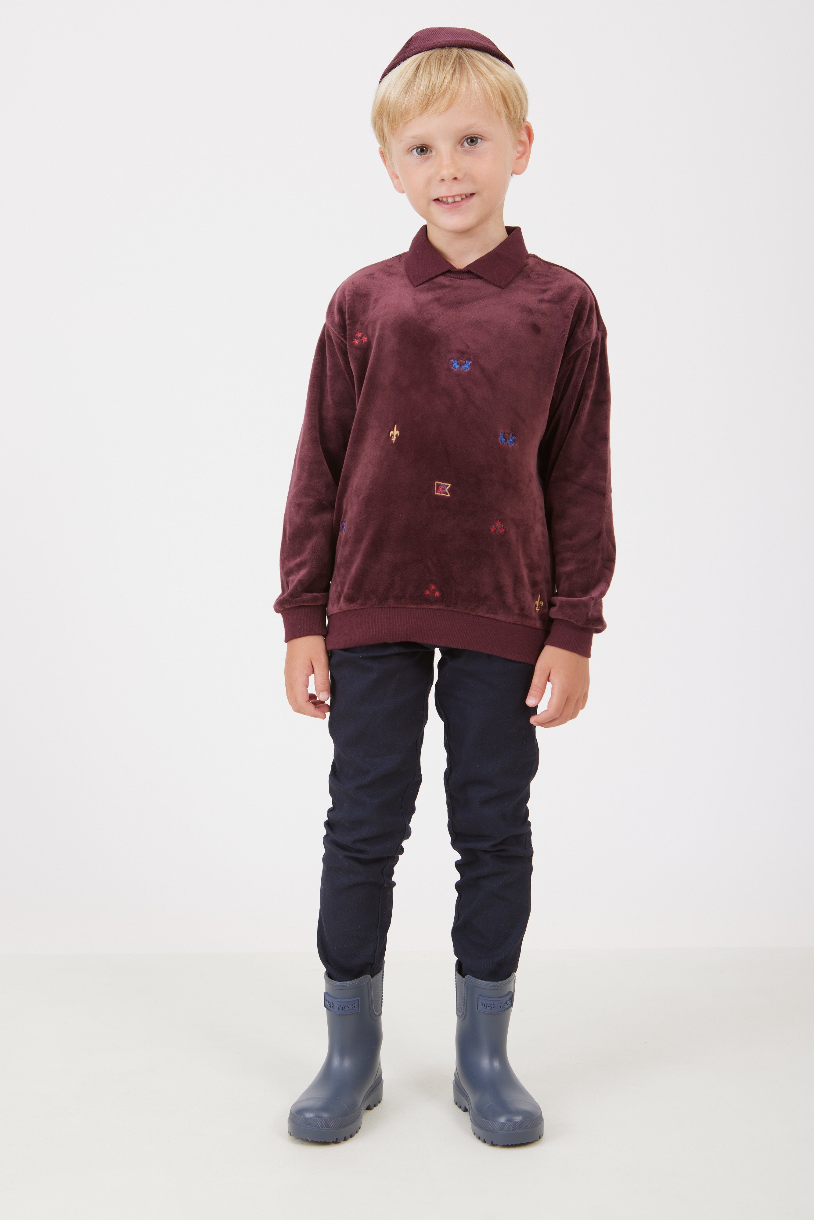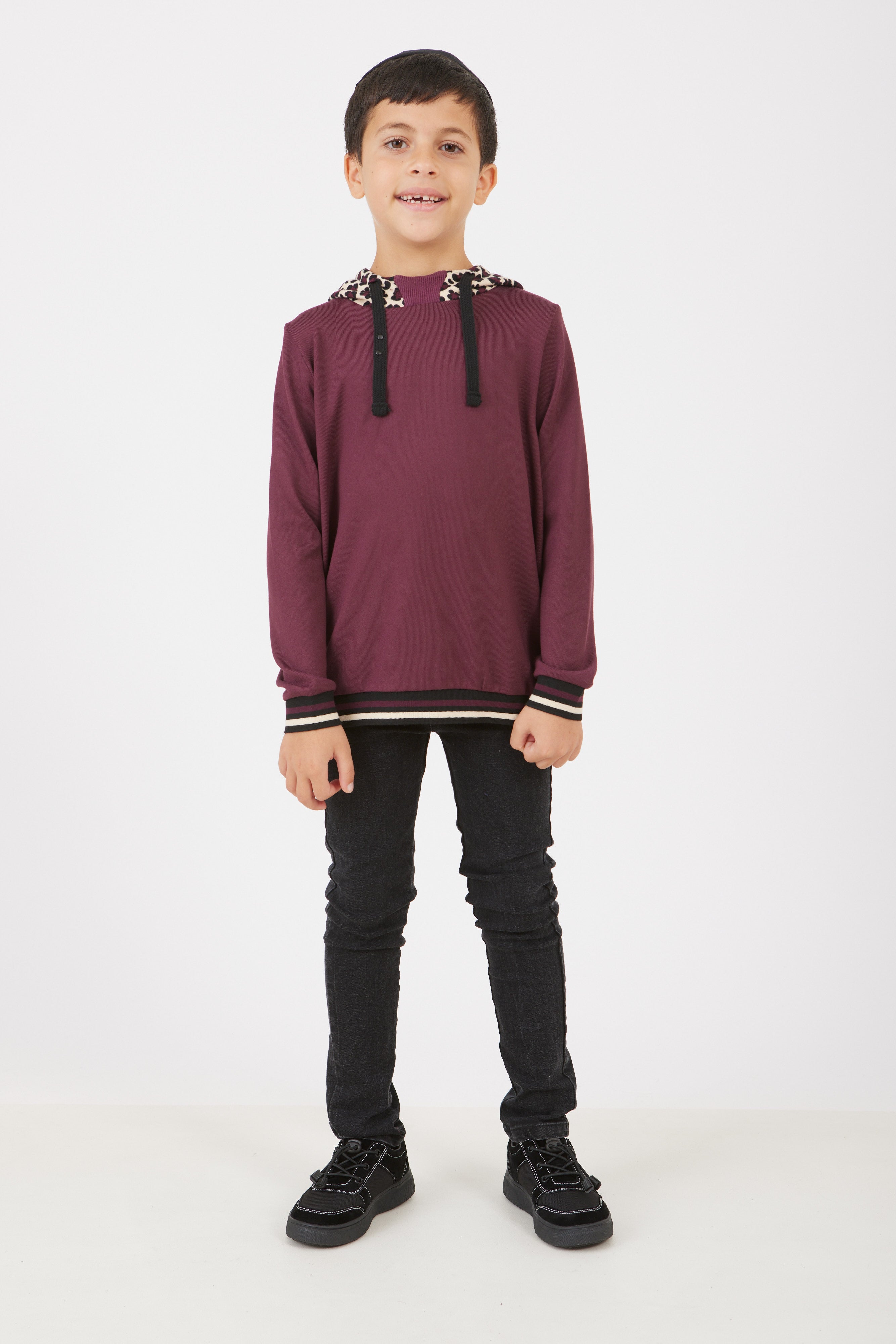 חולצת קפוצ'ון עם שרוכים - בורדו