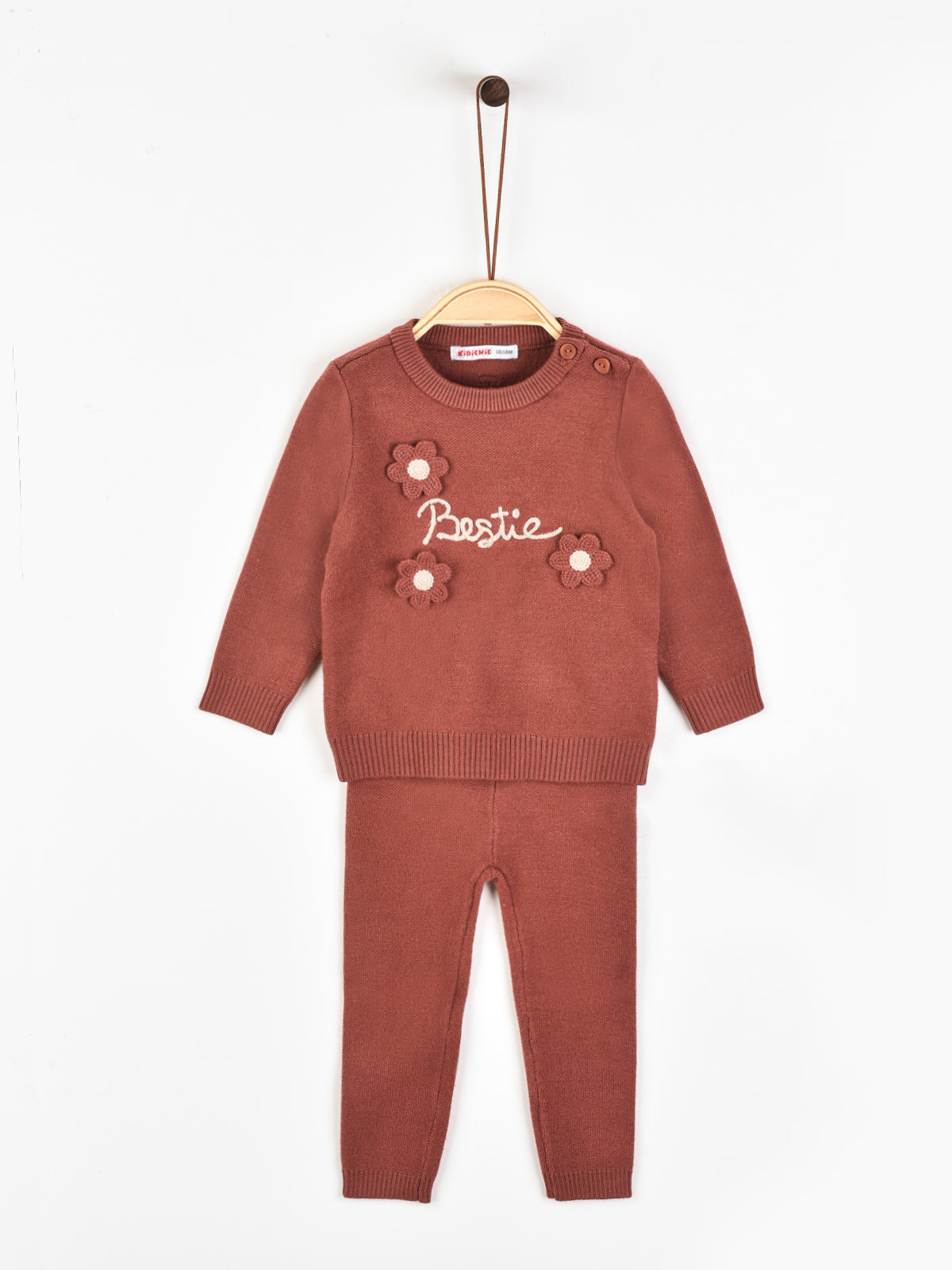 סט בייבי בנות סריג עם פרחי קרושה - BRICK