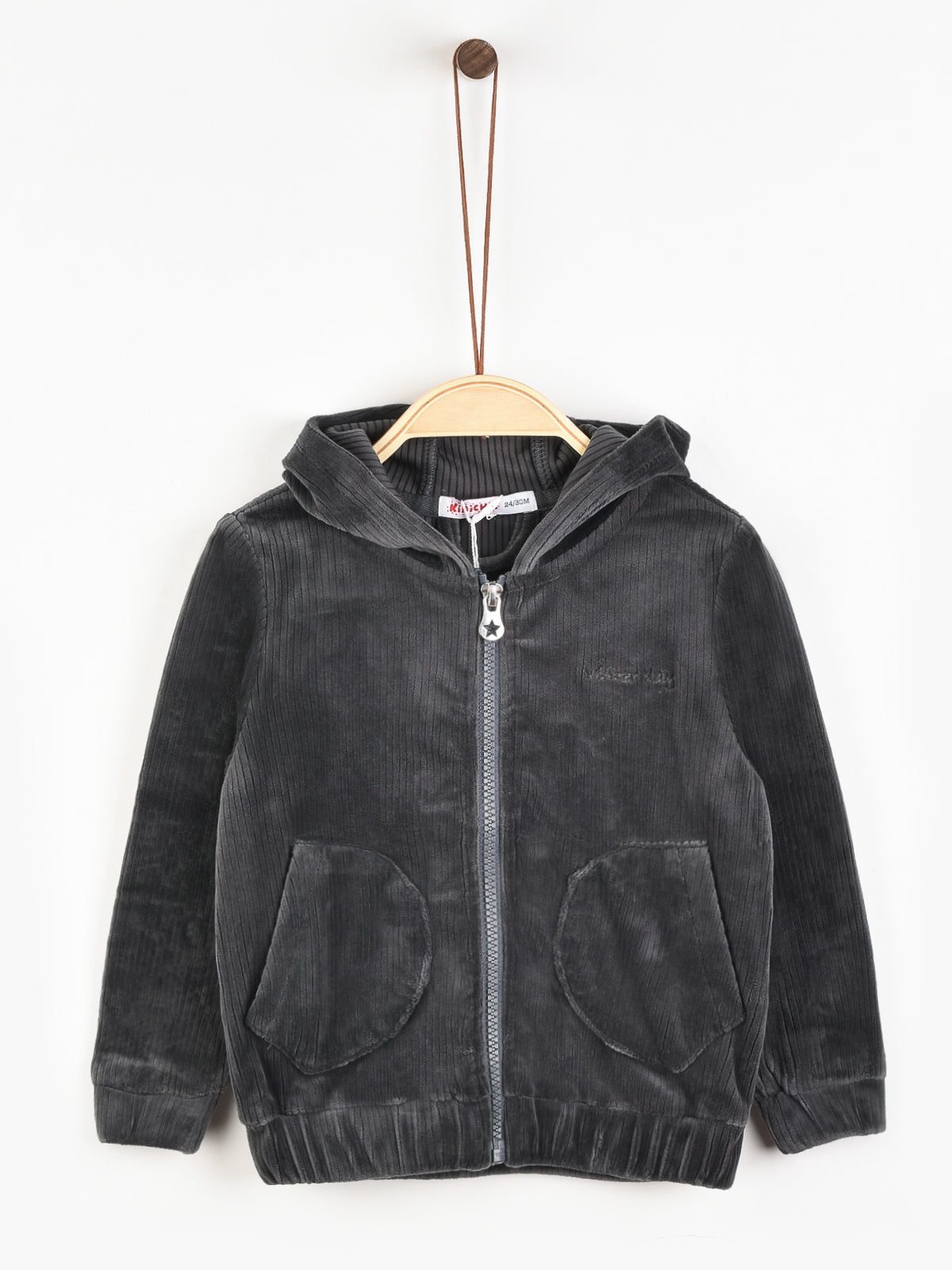 ז'קט קורדרוי עם קפוצ'ון - אפור