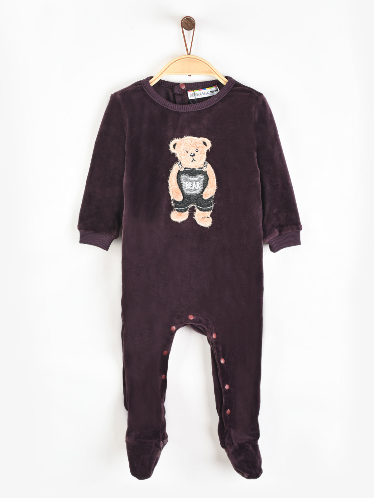 פיג'מת בייבי קטיפה עם דובי - סגול