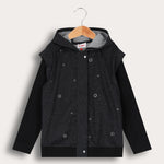 חולצת קפוצ'ון בשילוב אבנים - שחור