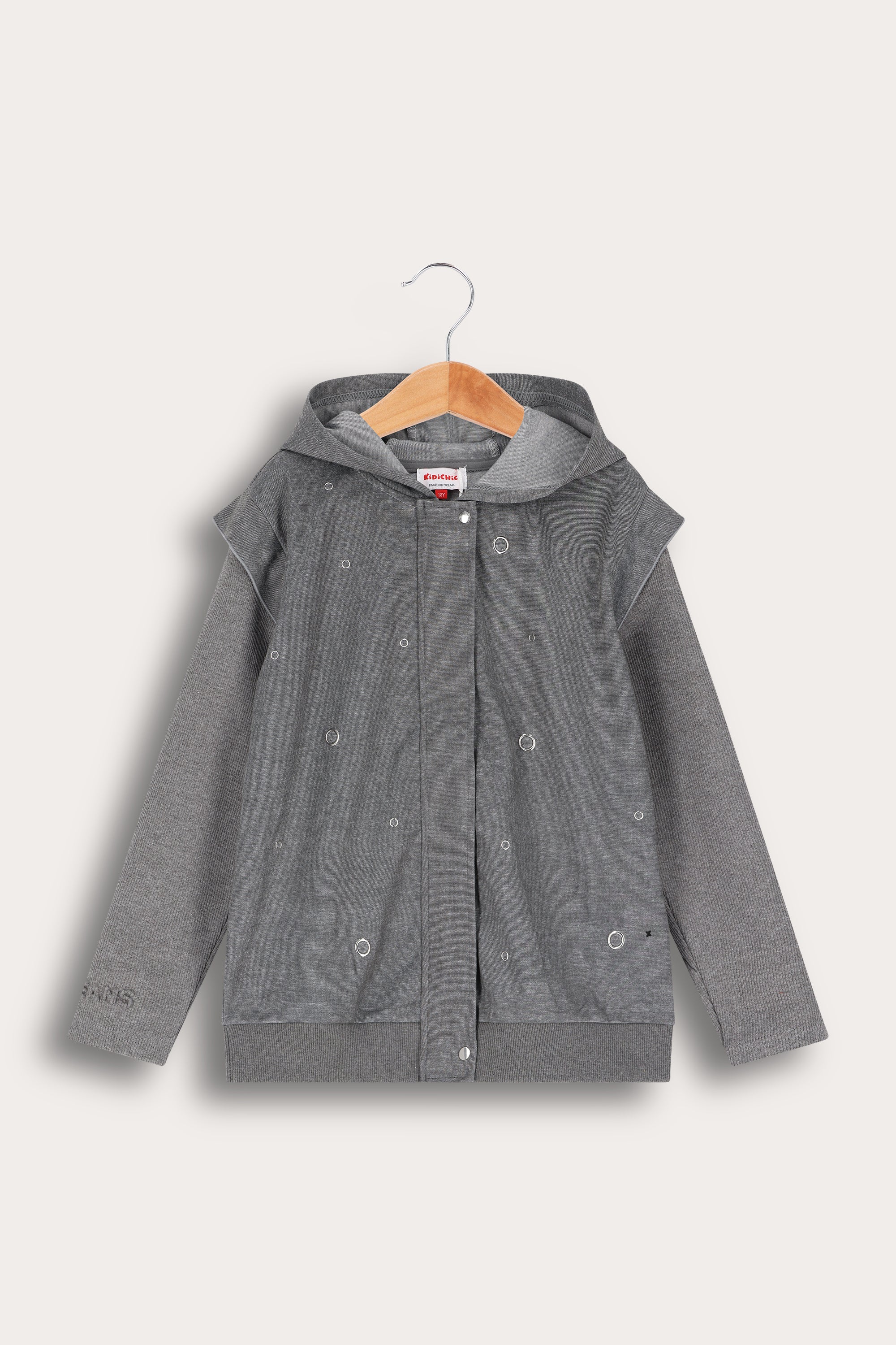 חולצת קפוצ'ון בשילוב אבנים - אפור