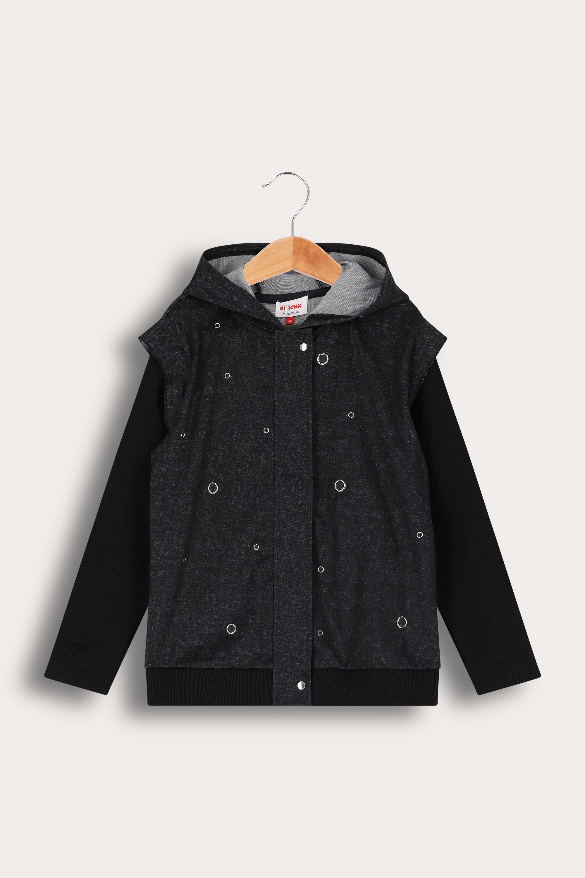 חולצת קפוצ'ון בשילוב אבנים - שחור