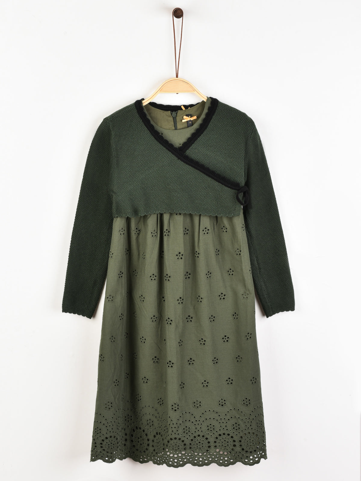 שמלה פרחונית עם צווארון קטיפה - אפור
