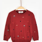 חולצת סריג עם רקמה - אדום