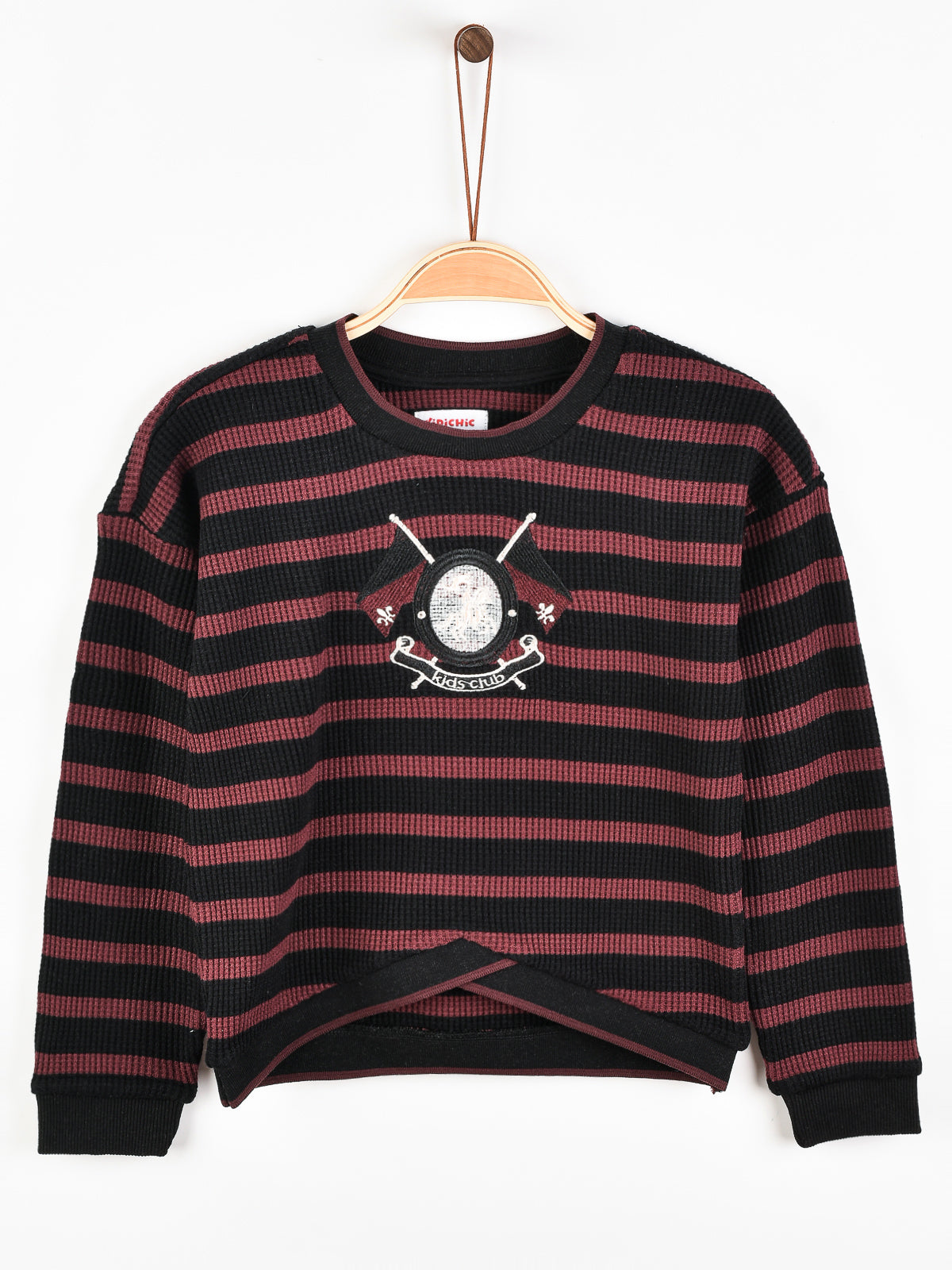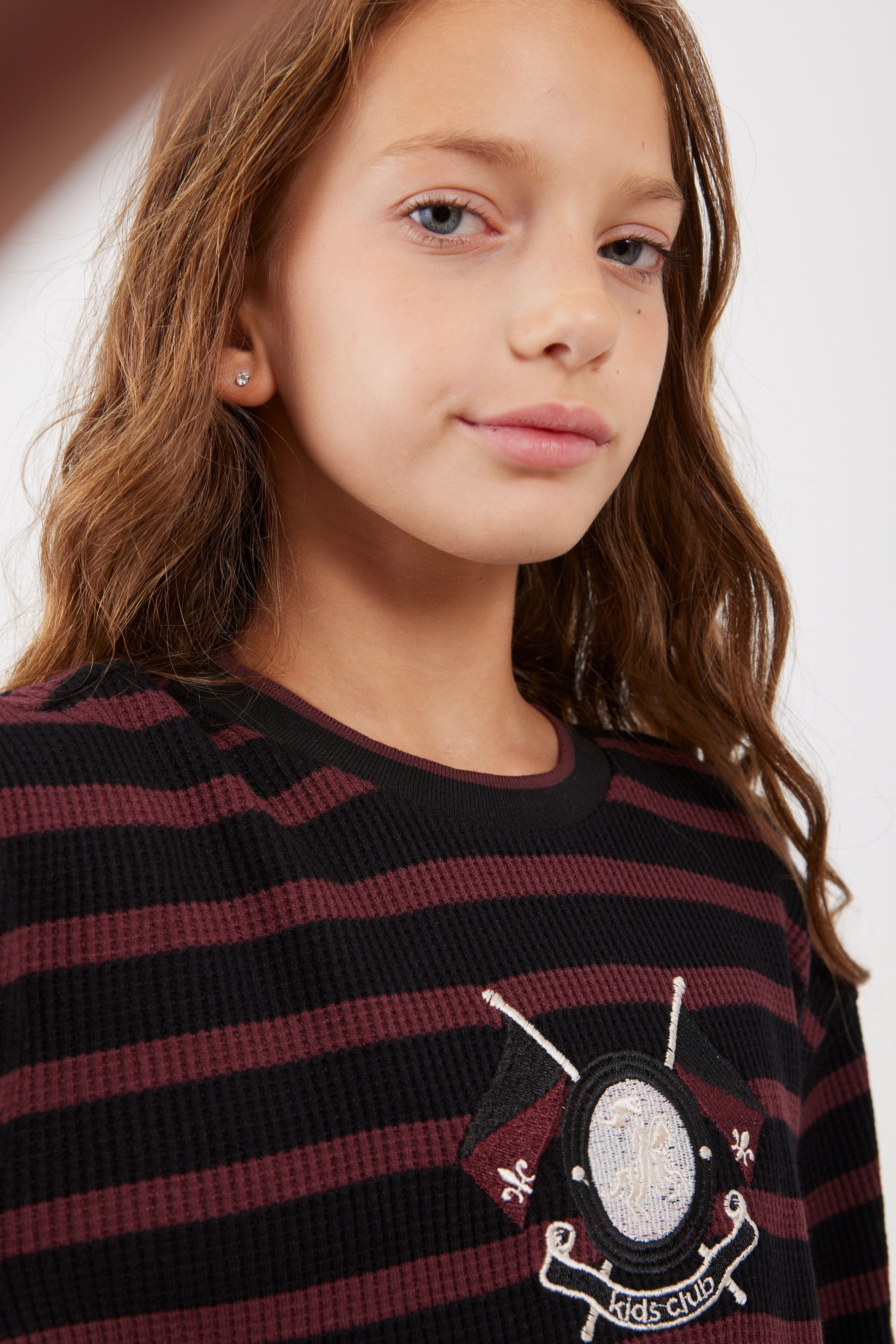 חולצת בנות מעוצבת עם חלק תחתון בסיומת אלכסונית ייחודית.