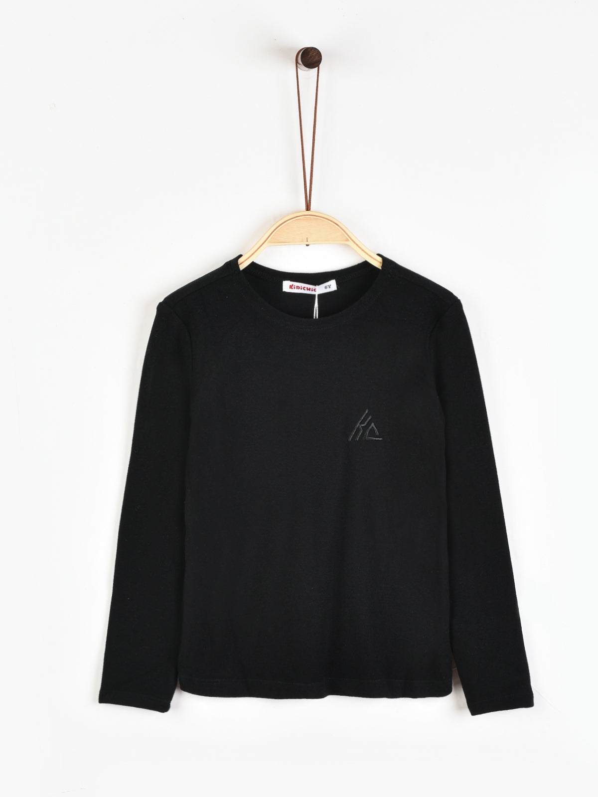 חולצת בייסיק ריב שרוול 3/4 - שחור