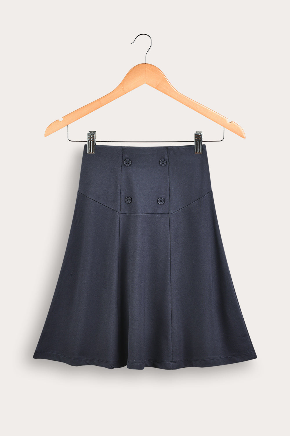 חצאית בנות אלגנטית ונוחה, בגזרת פנלים מתרחבת שמעניקה תנועה טבעית. עשויה מבד ג’רסי איכותי ונעים, בגוון חלק ואחיד המשתלב בקלות עם מגוון חולצות ועליוניות. מעוצבת עם ארבעה כפתורים קדמיים שמשלימים מראה קלאסי ומעודן - להופעה חיננית ומסודרת.