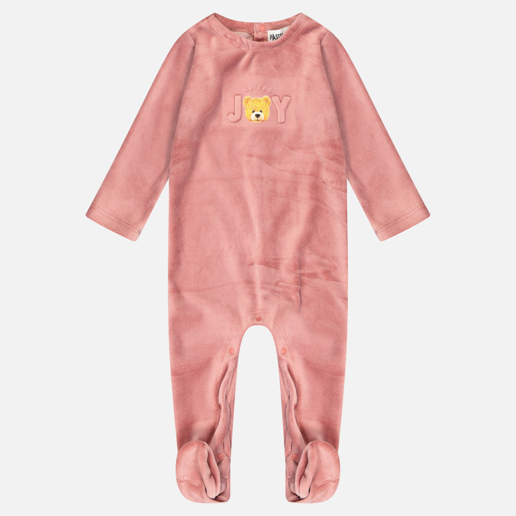 אוברול קטיפה רך ומפנק לתינוקות, בעיצוב יוניסקס קלאסי ונוח.