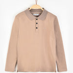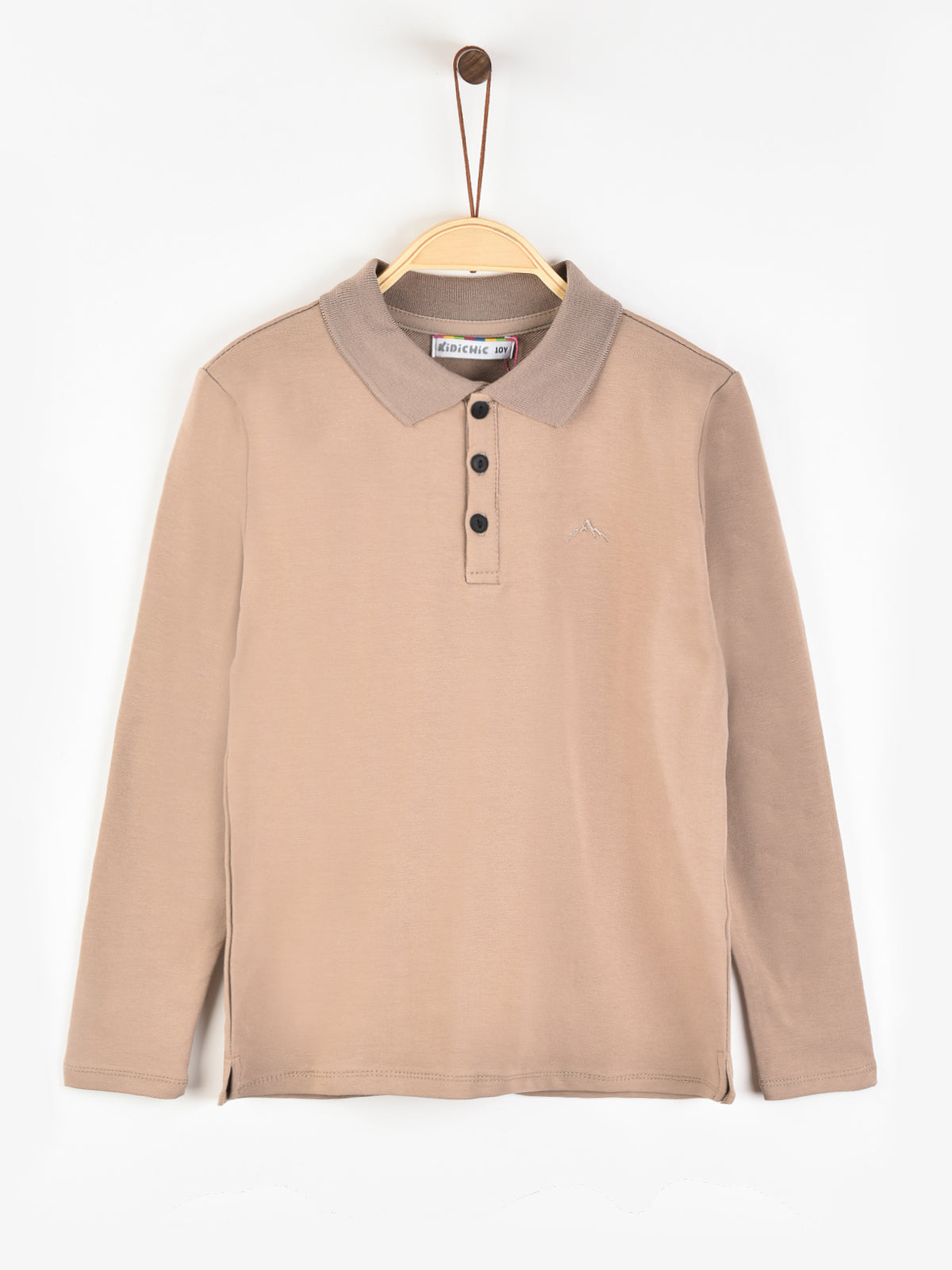 חולצת פולו עם שרוול ארוך, מעוצבת עם צווארון ושלושה כפתורים.