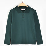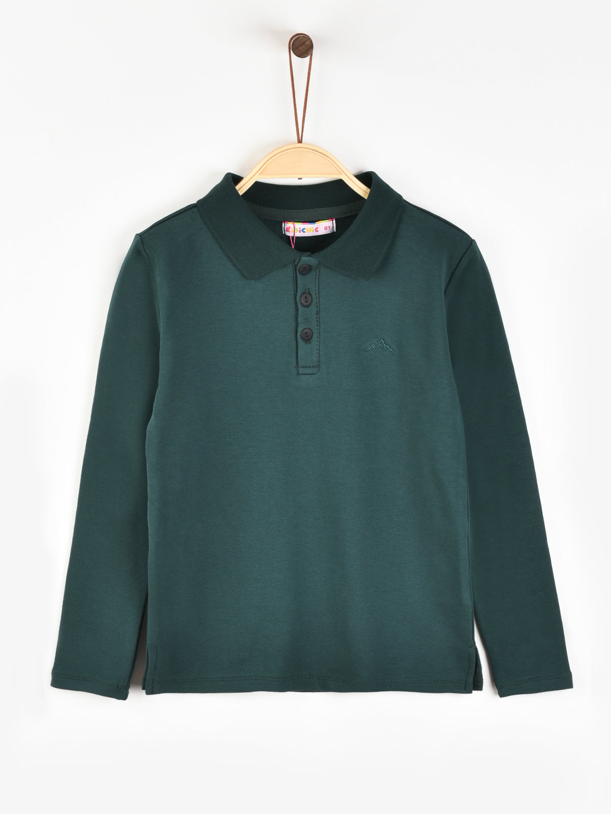 חולצת פולו עם שרוול ארוך, מעוצבת עם צווארון ושלושה כפתורים.