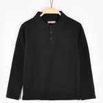 חולצת פולו עם שרוול ארוך, מעוצבת עם צווארון ושלושה כפתורים.