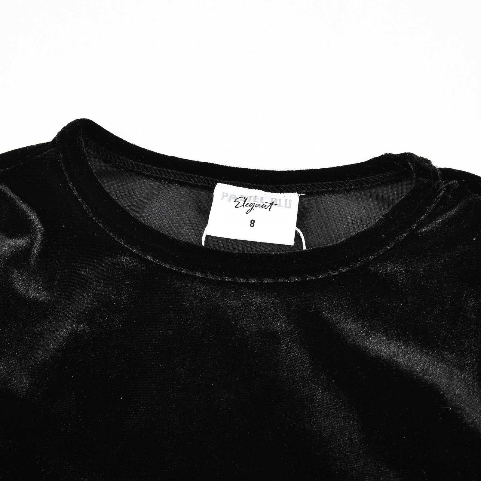 חולצה אלגנטית וחגיגית לבנות, עשויה מבד קטיפה רך ומבריק במראה יוקרתי.