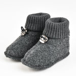 נעליים לתינוקות עם סיומת ריב ללבישה קלה ונוחה, עשויות מבד דמוי צמר.