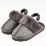 נעלי בית סגורות עם פרווה ורצועה אחורית עם גומי.