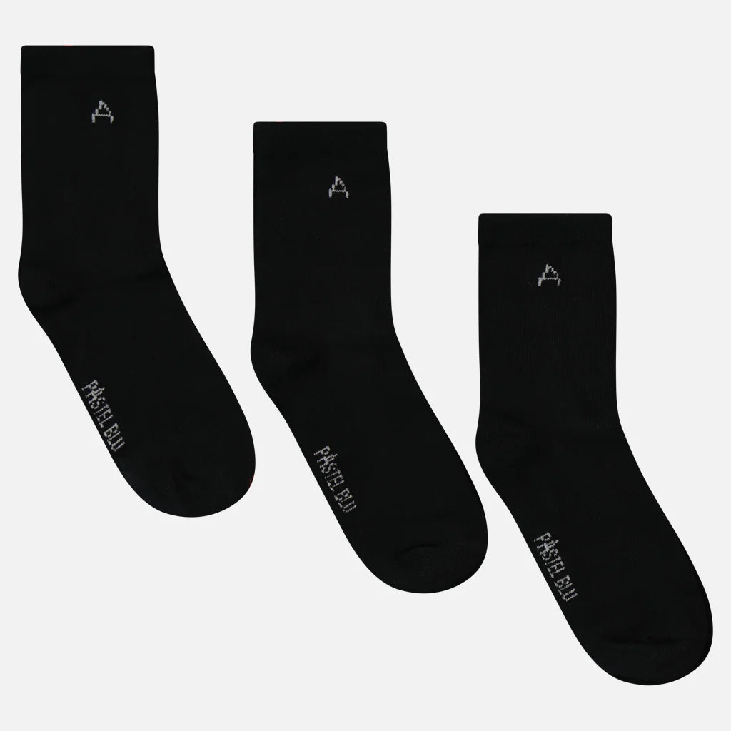 שלישיית גרבי בנים חלק פסטל - שחור 35-38