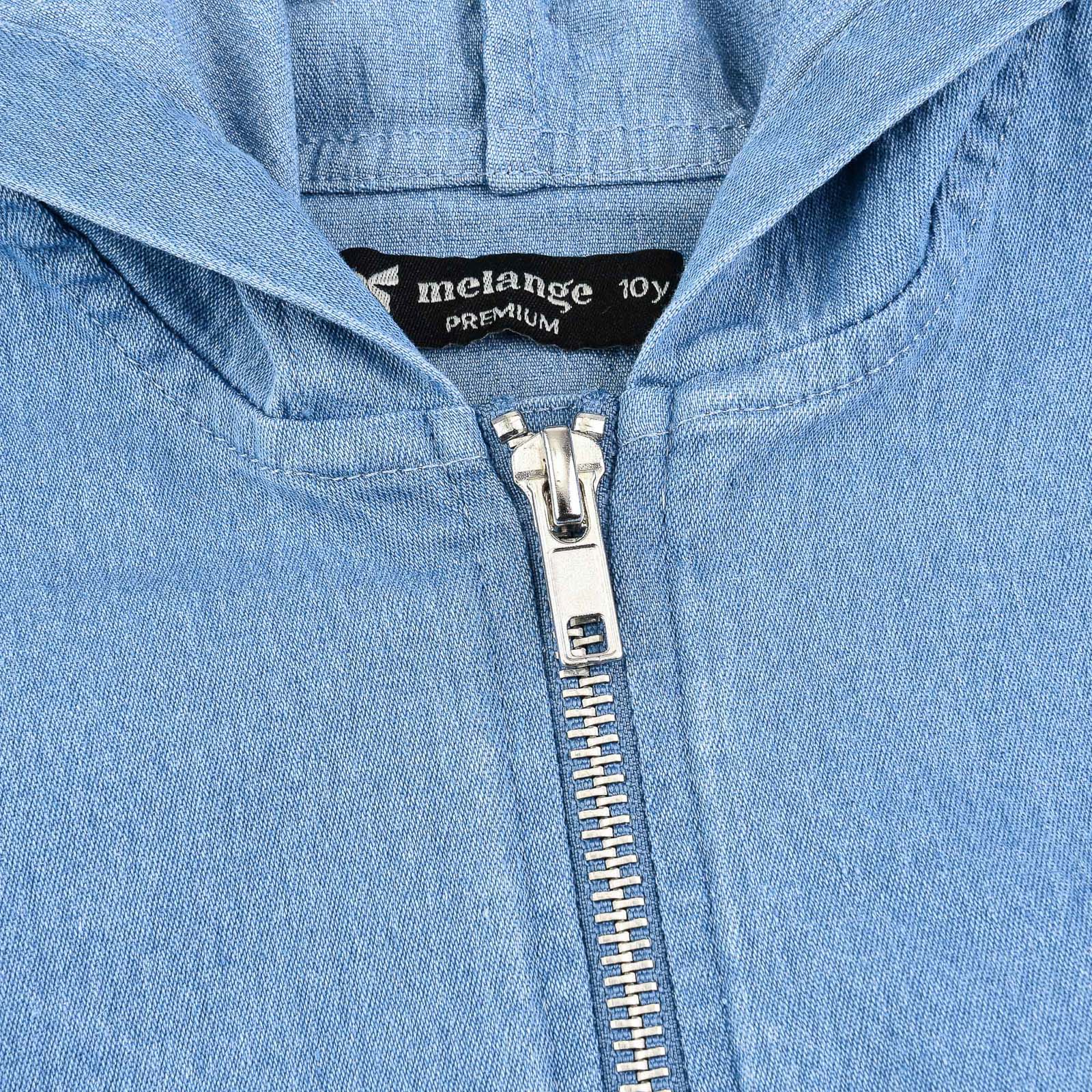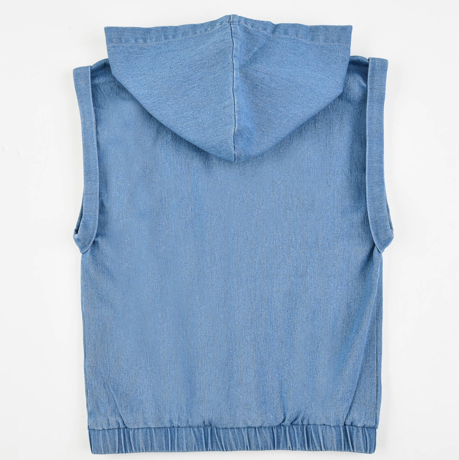 וסט ג'ינס עם כובע קפוצ'ון וסגירת רוכסן.