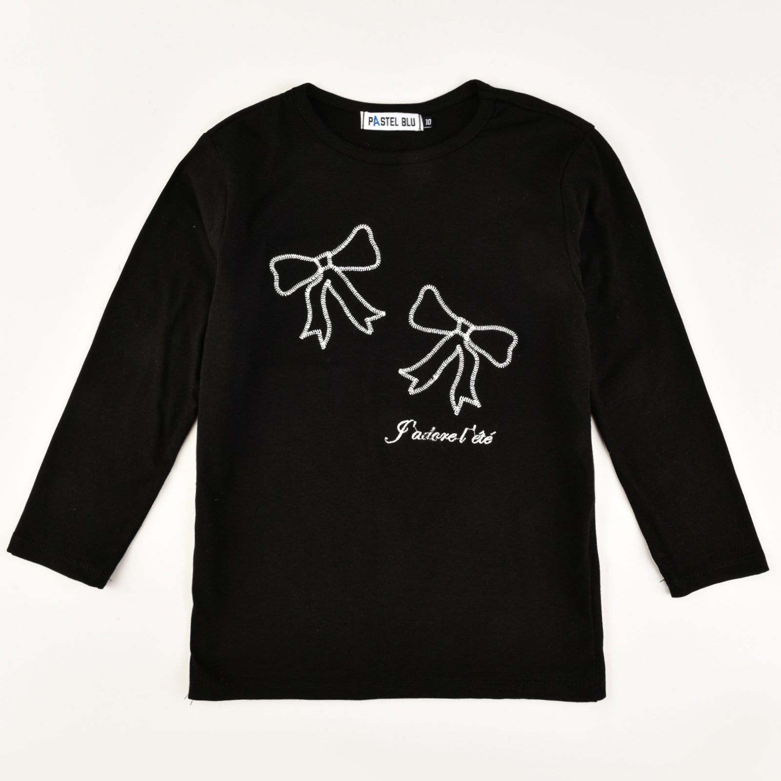 חולצת שרוול 3/4 עם פפיונים - שחור