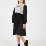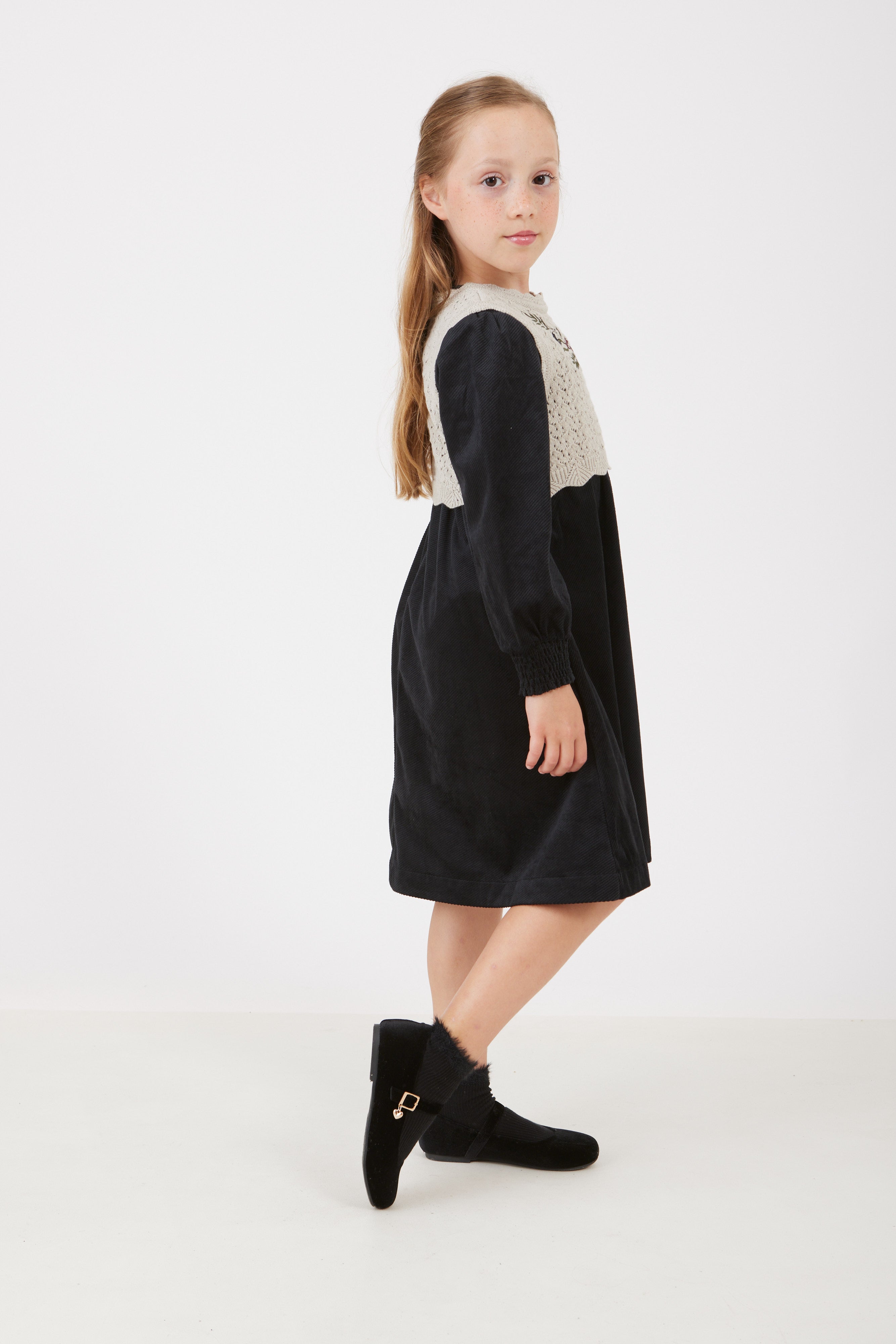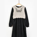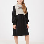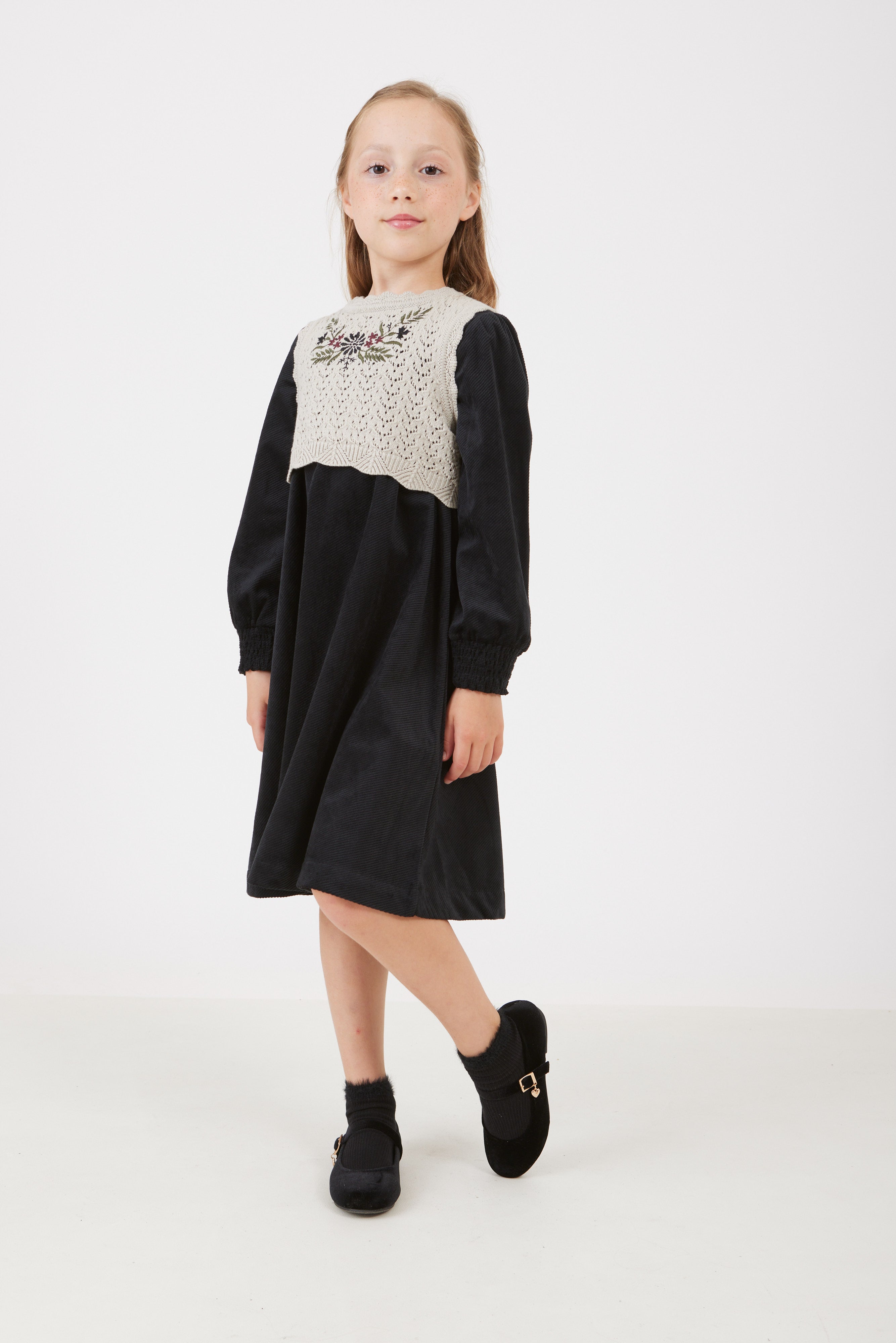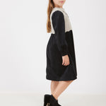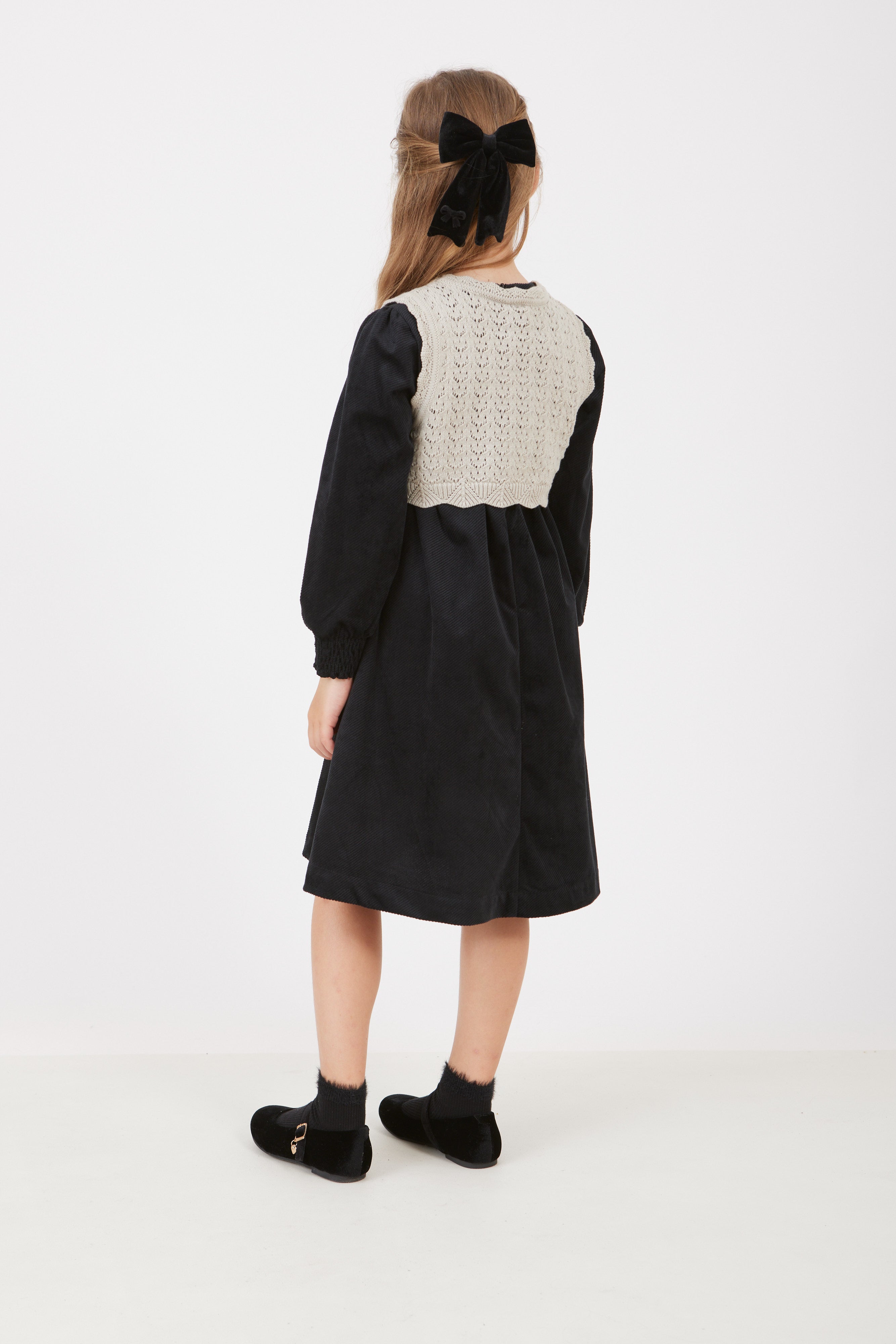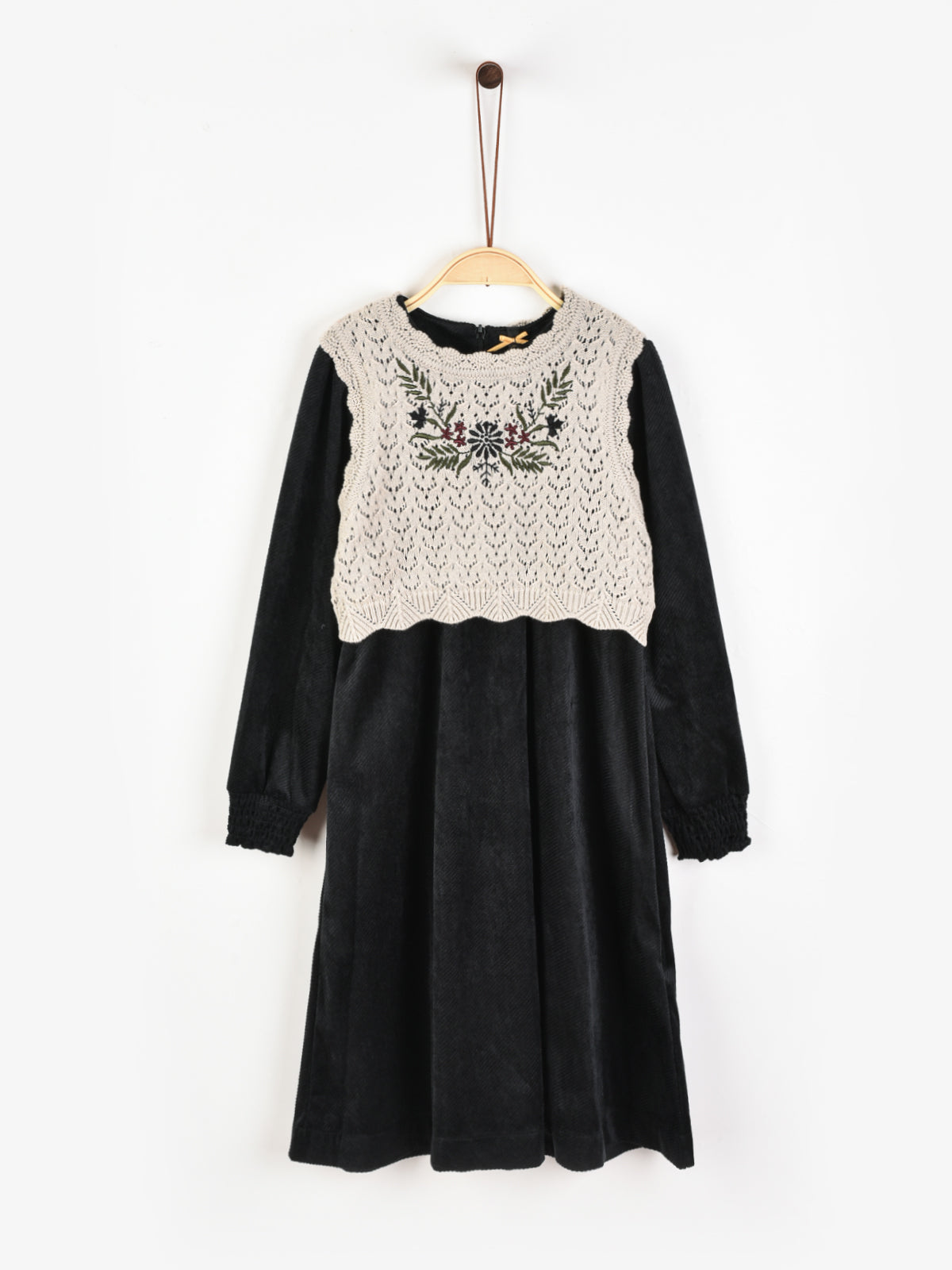 שמלת קטיפה בשילוב וסט סריג - שחור