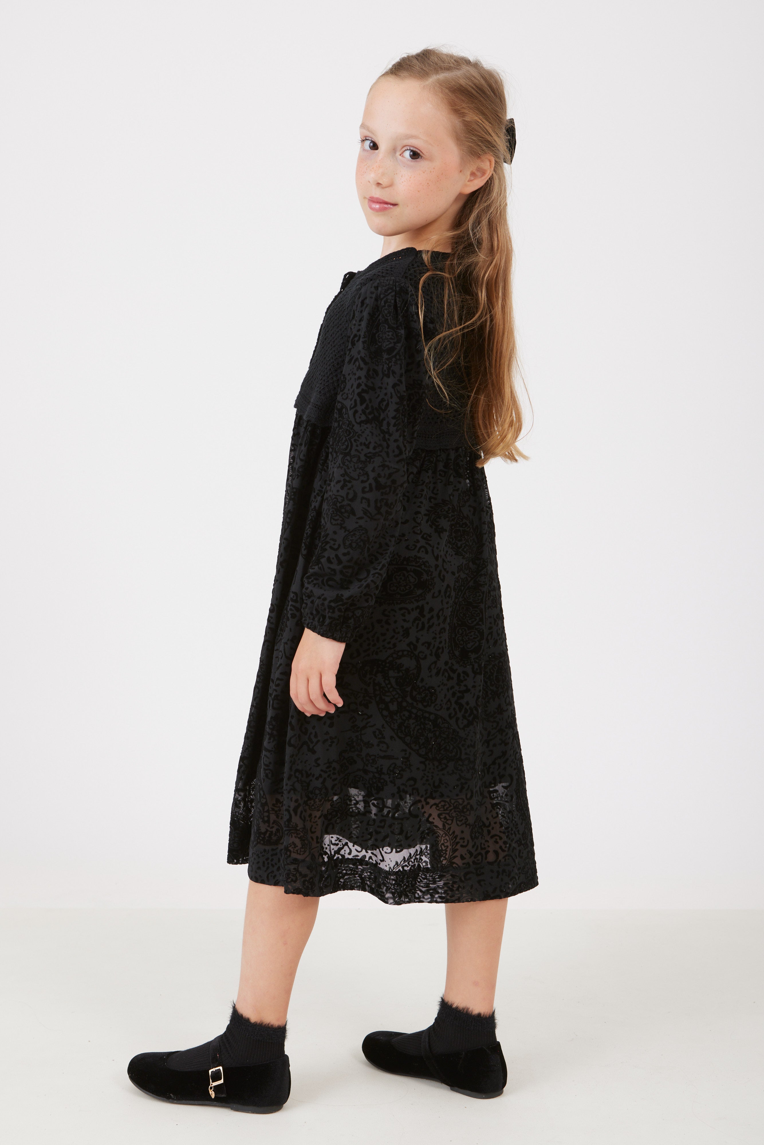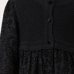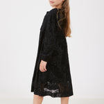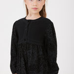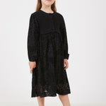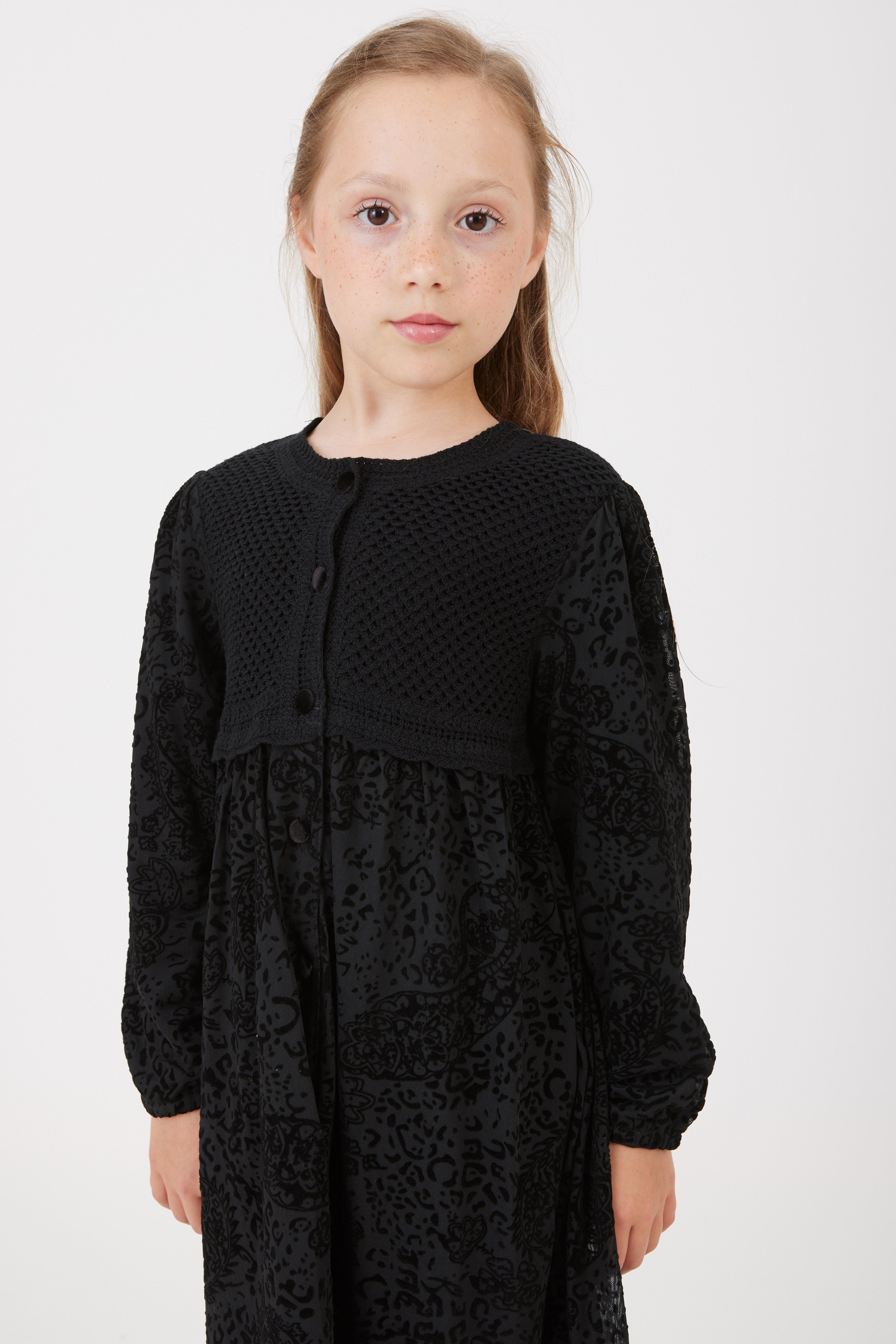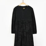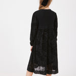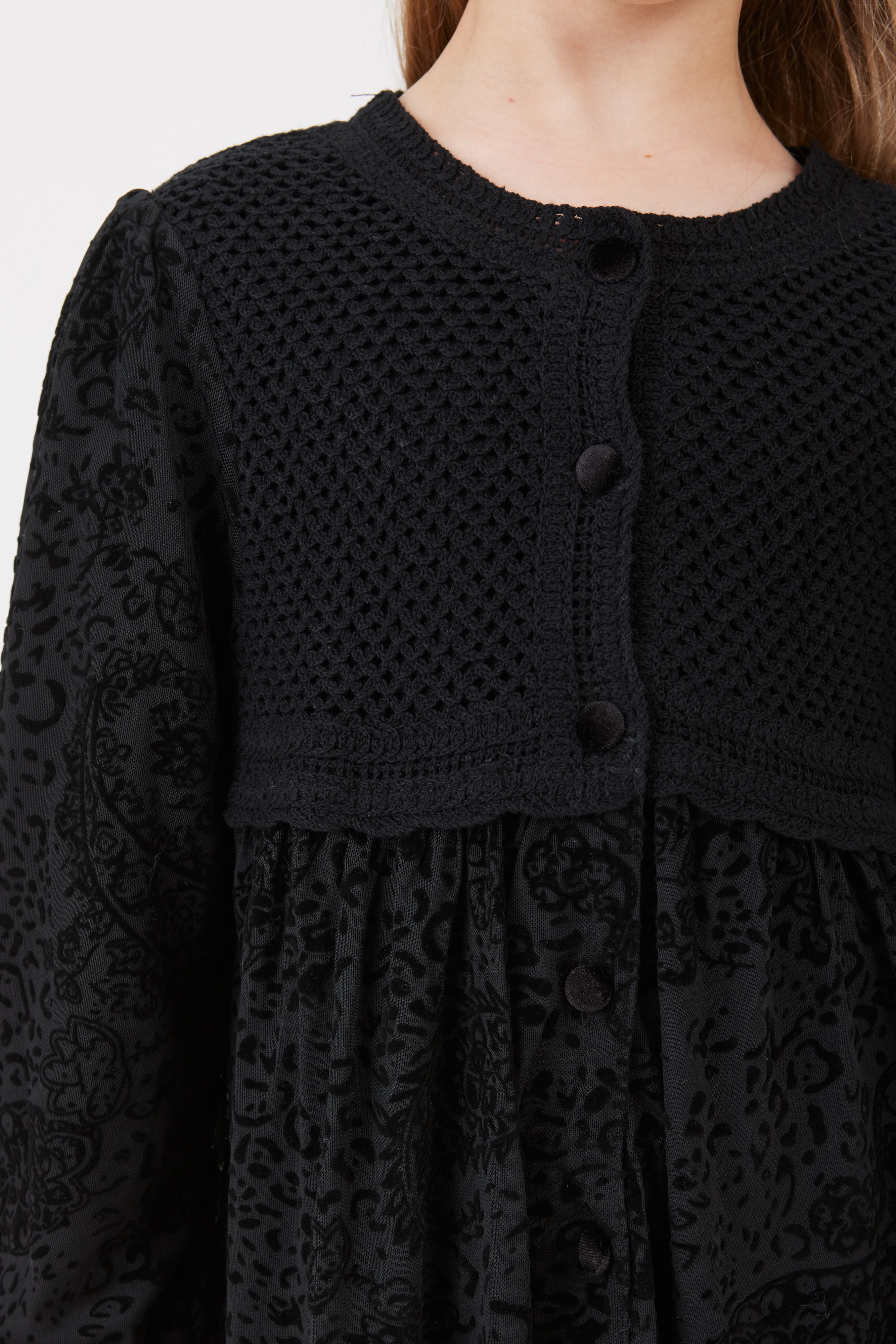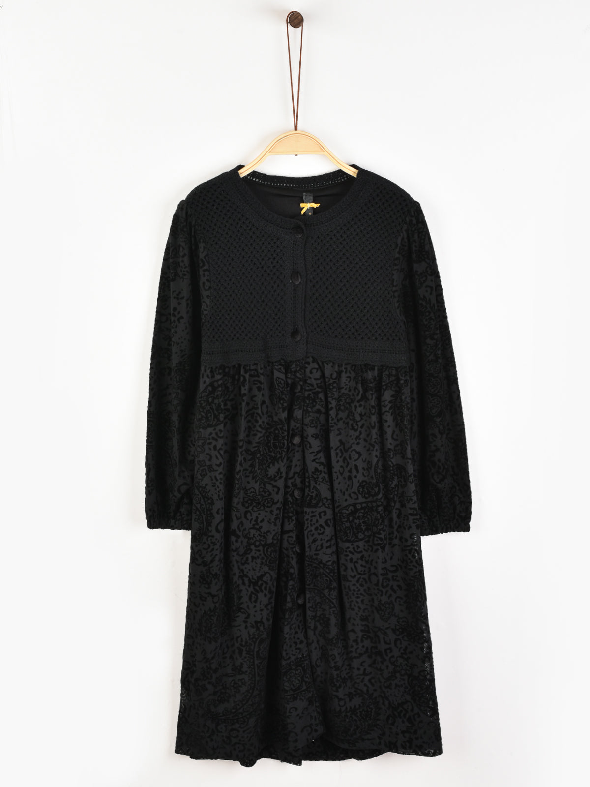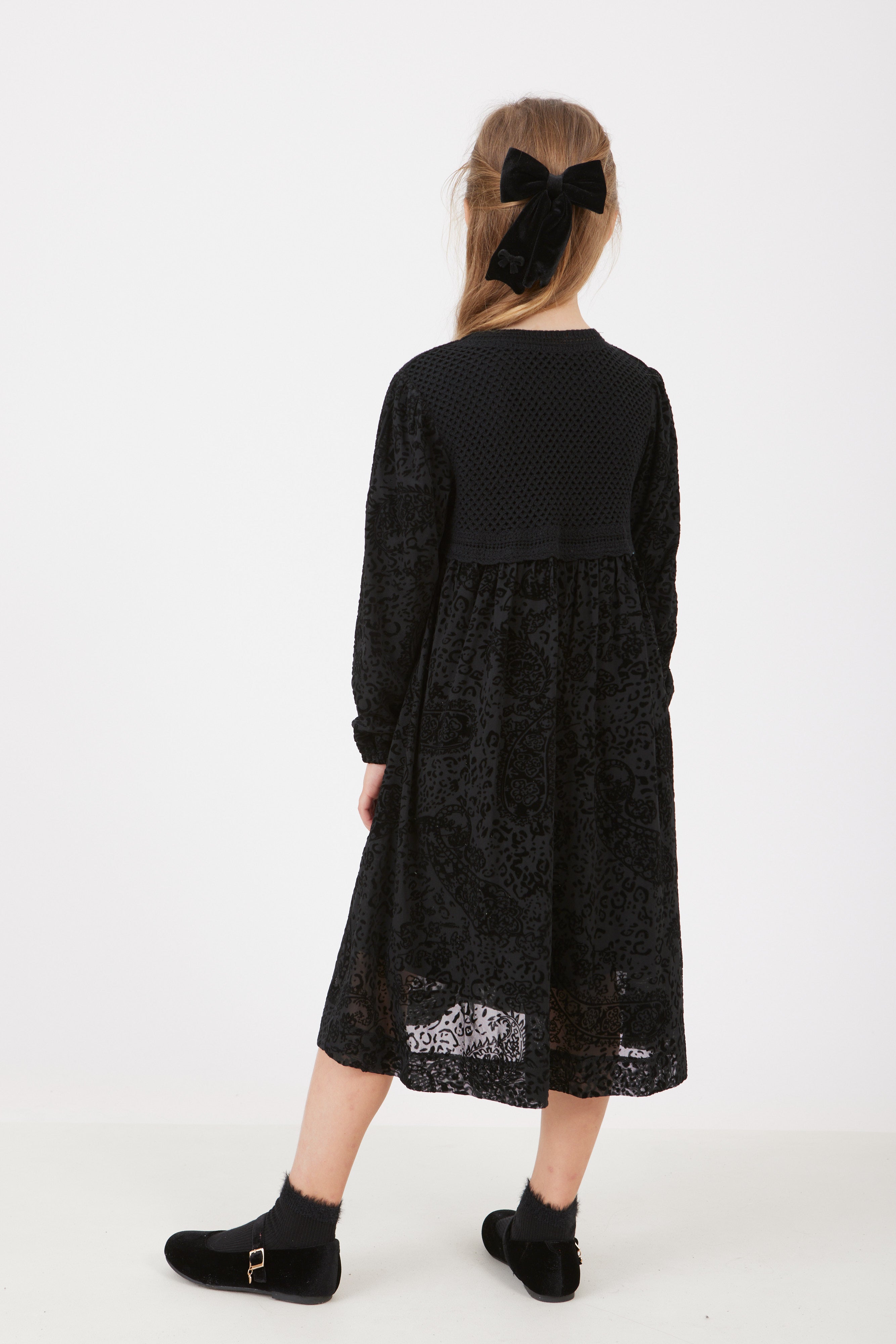 שמלת הדפס קטיפה בשילוב סריג - שחור