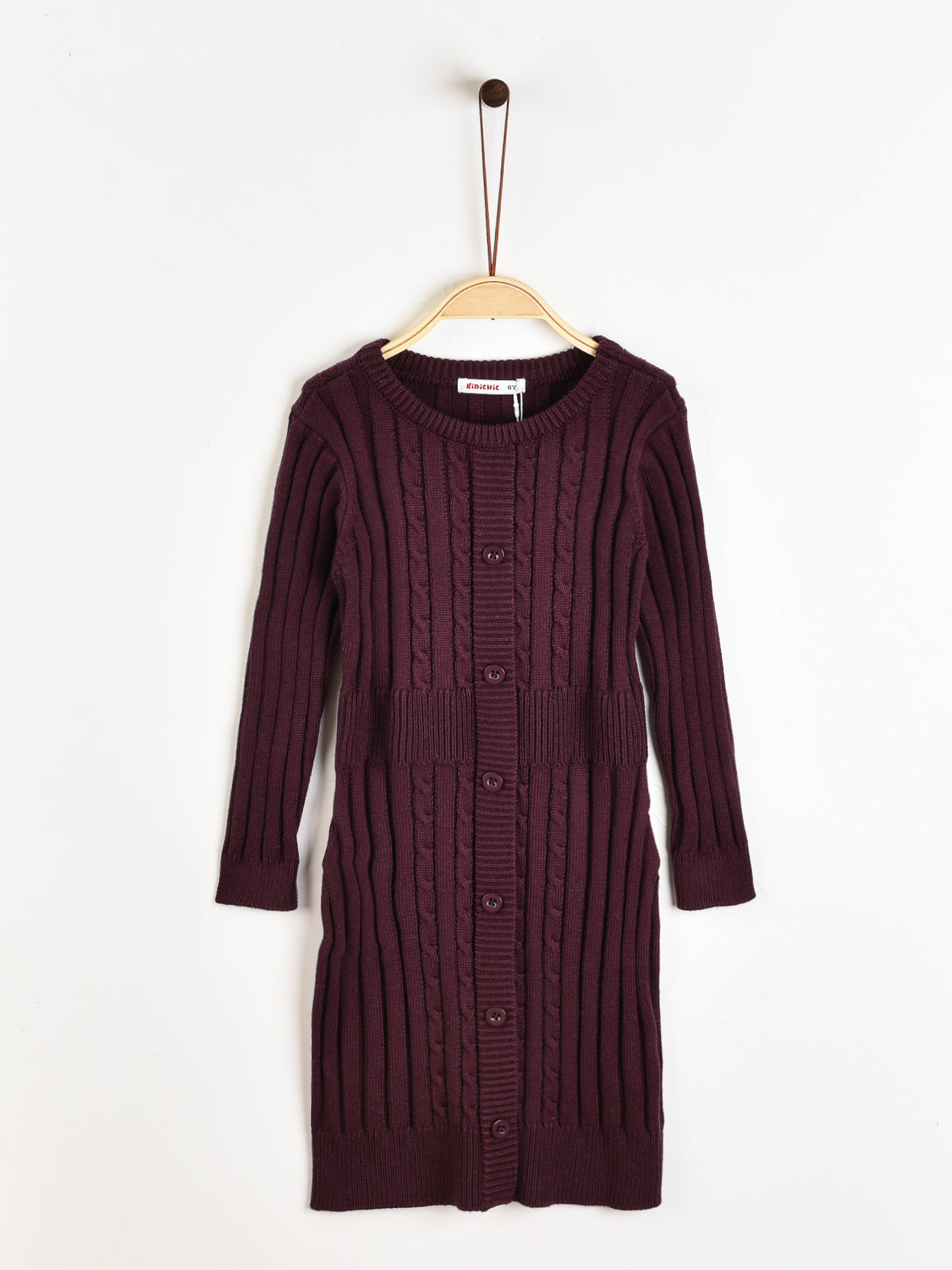 שמלת סריג מכופתרת - בורדו