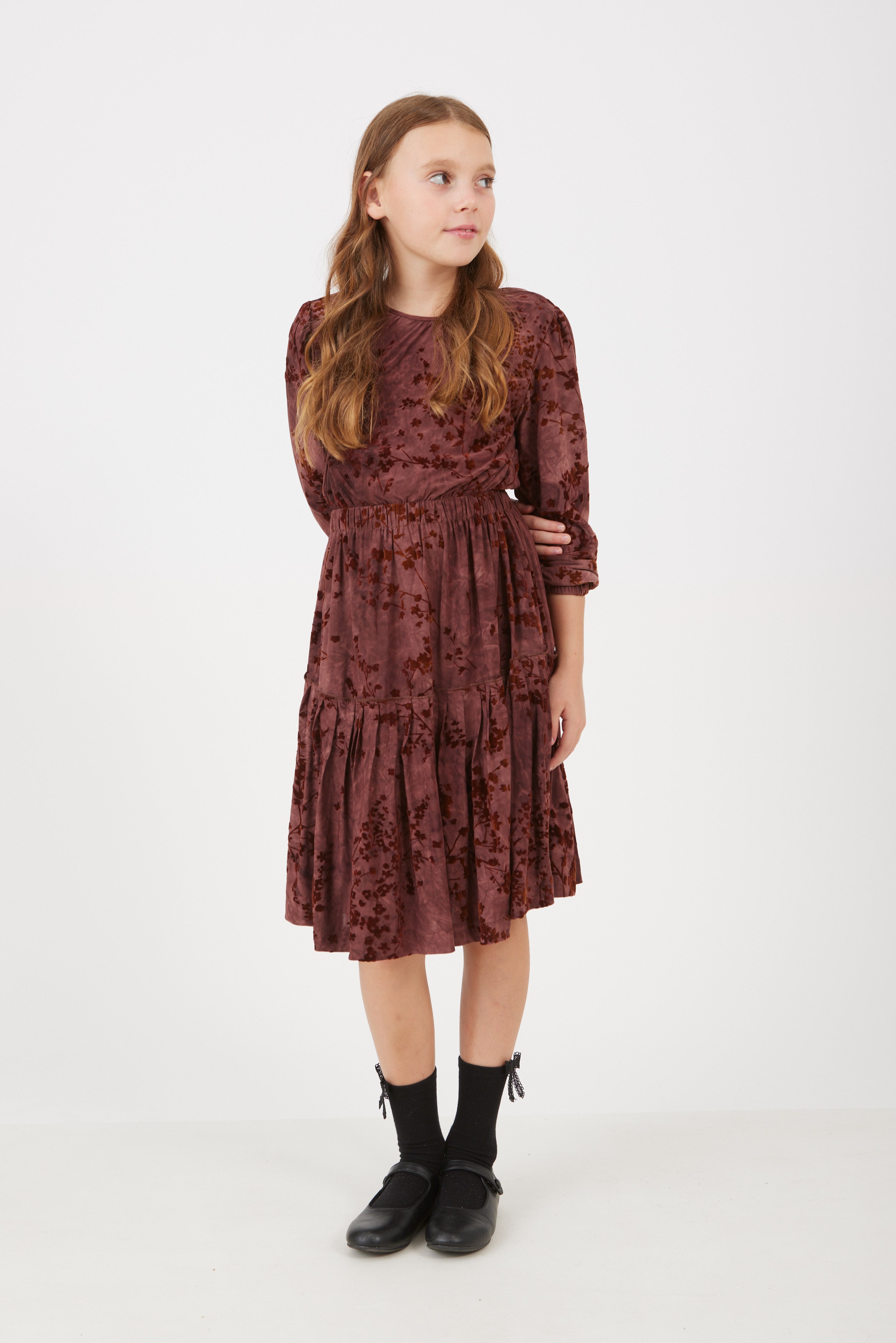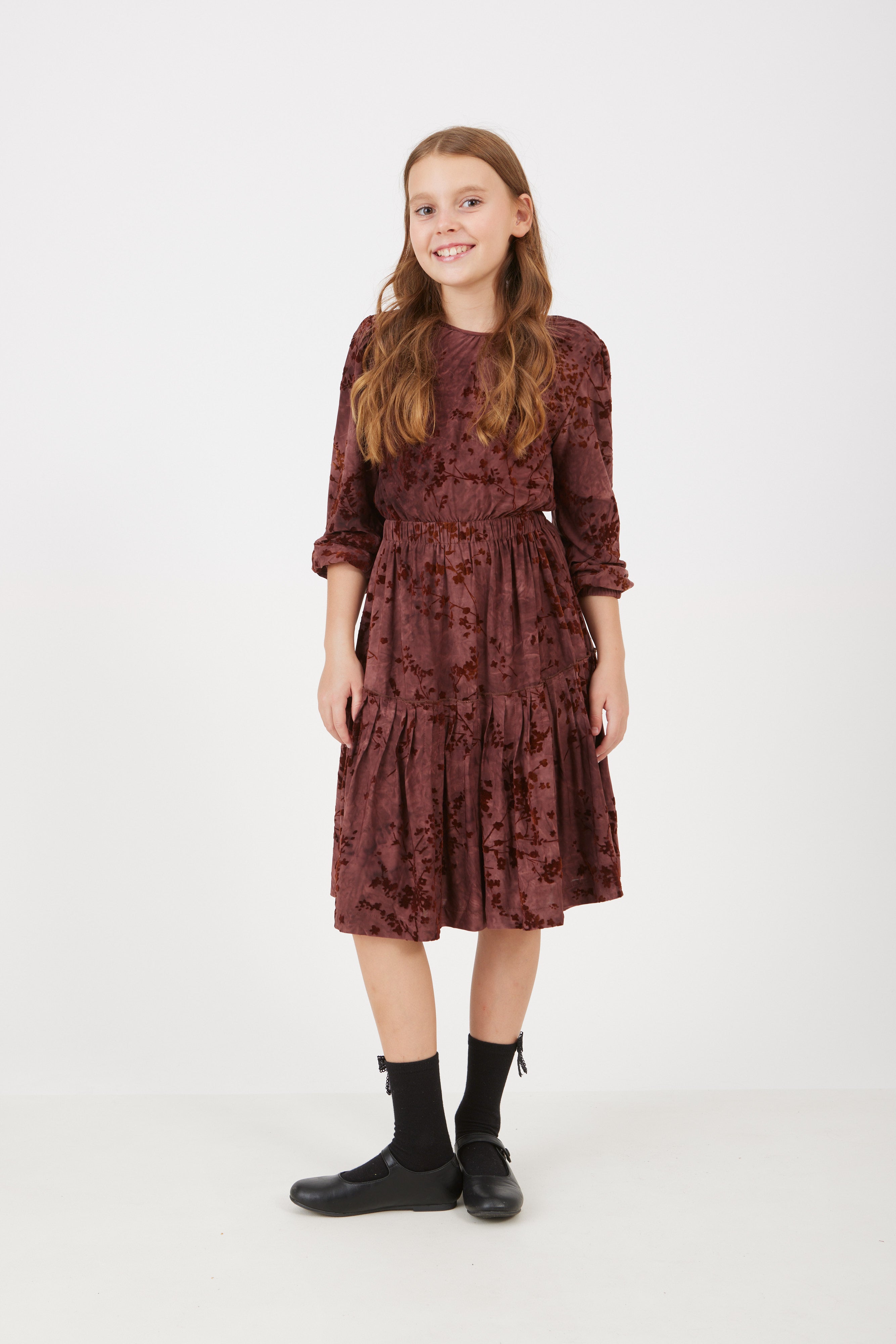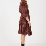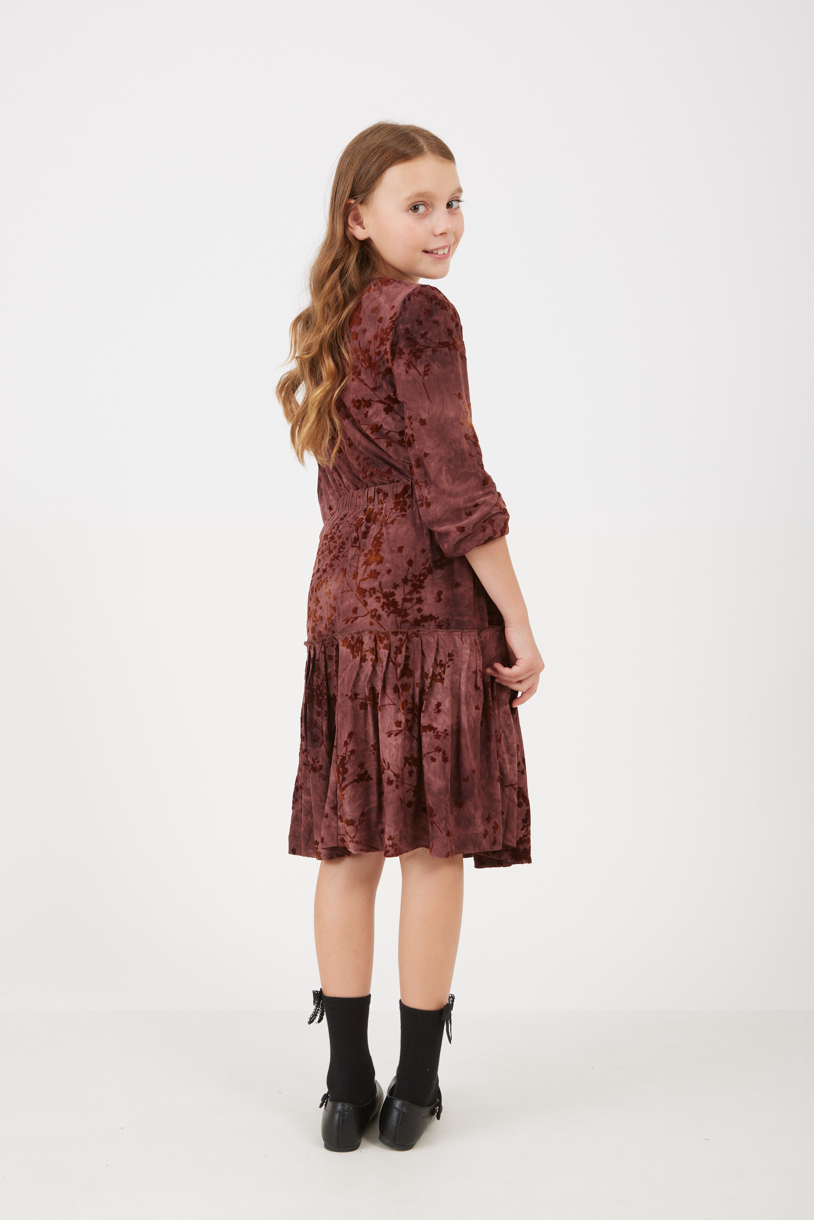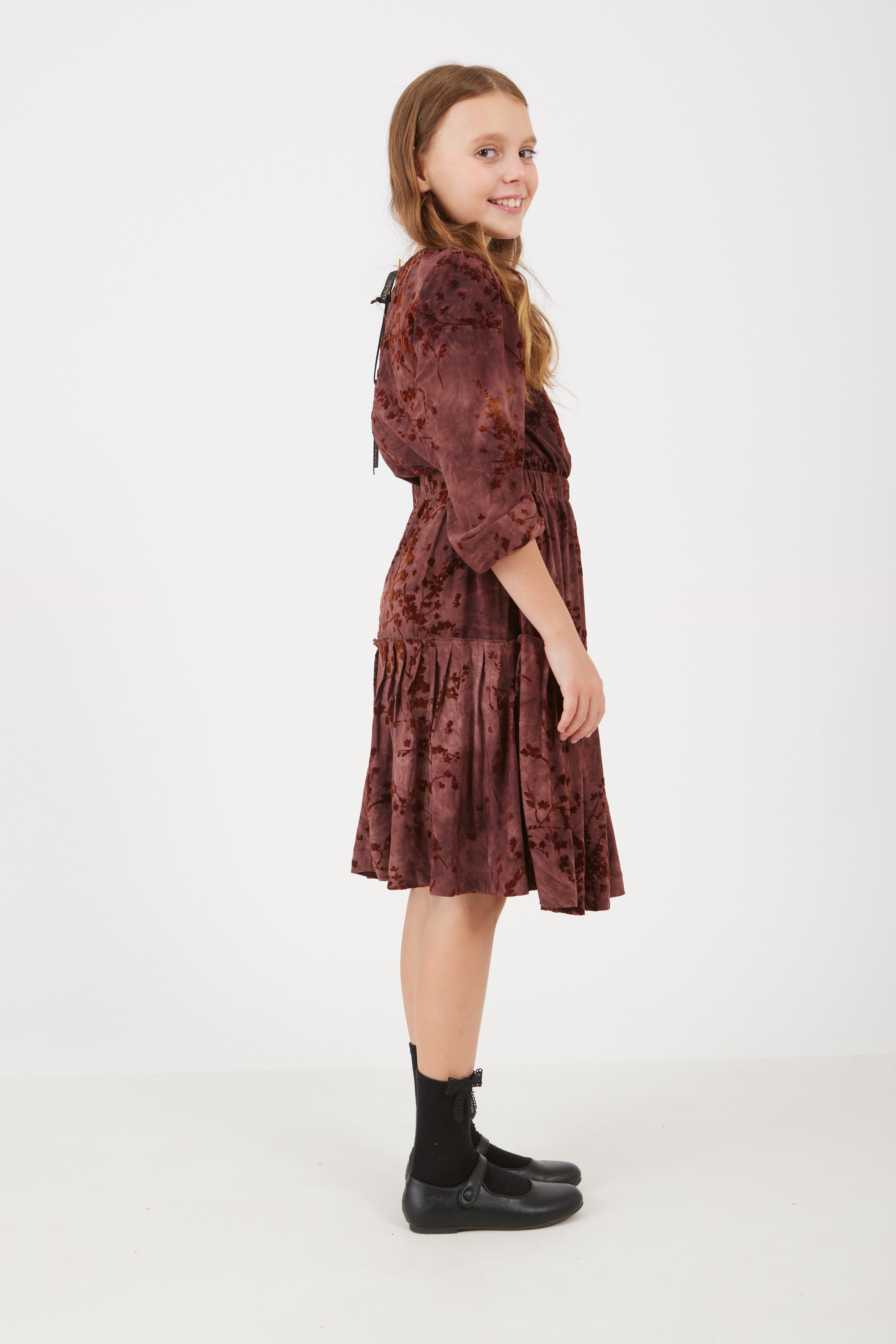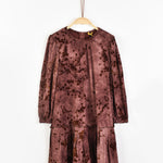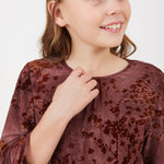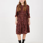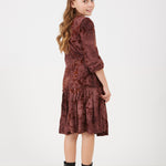 שמלה עם פרחים מקטיפה - בורדו
