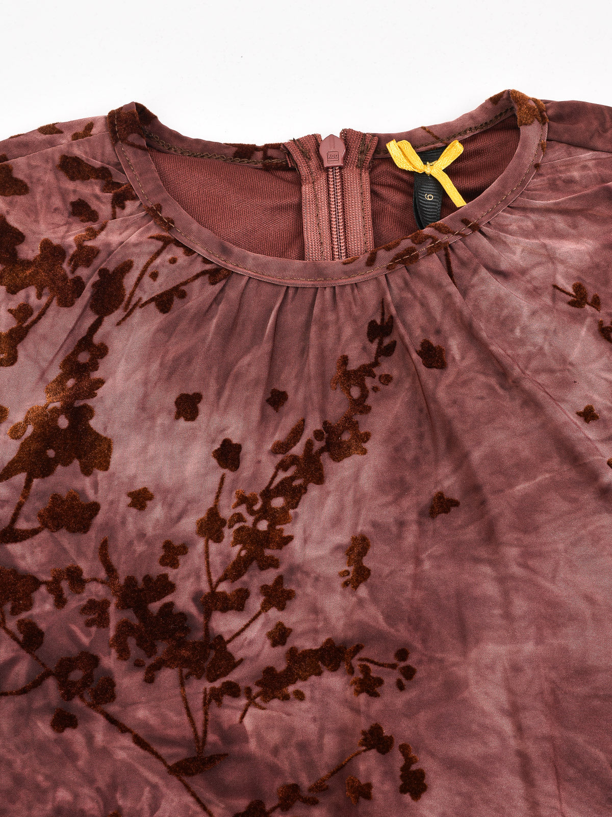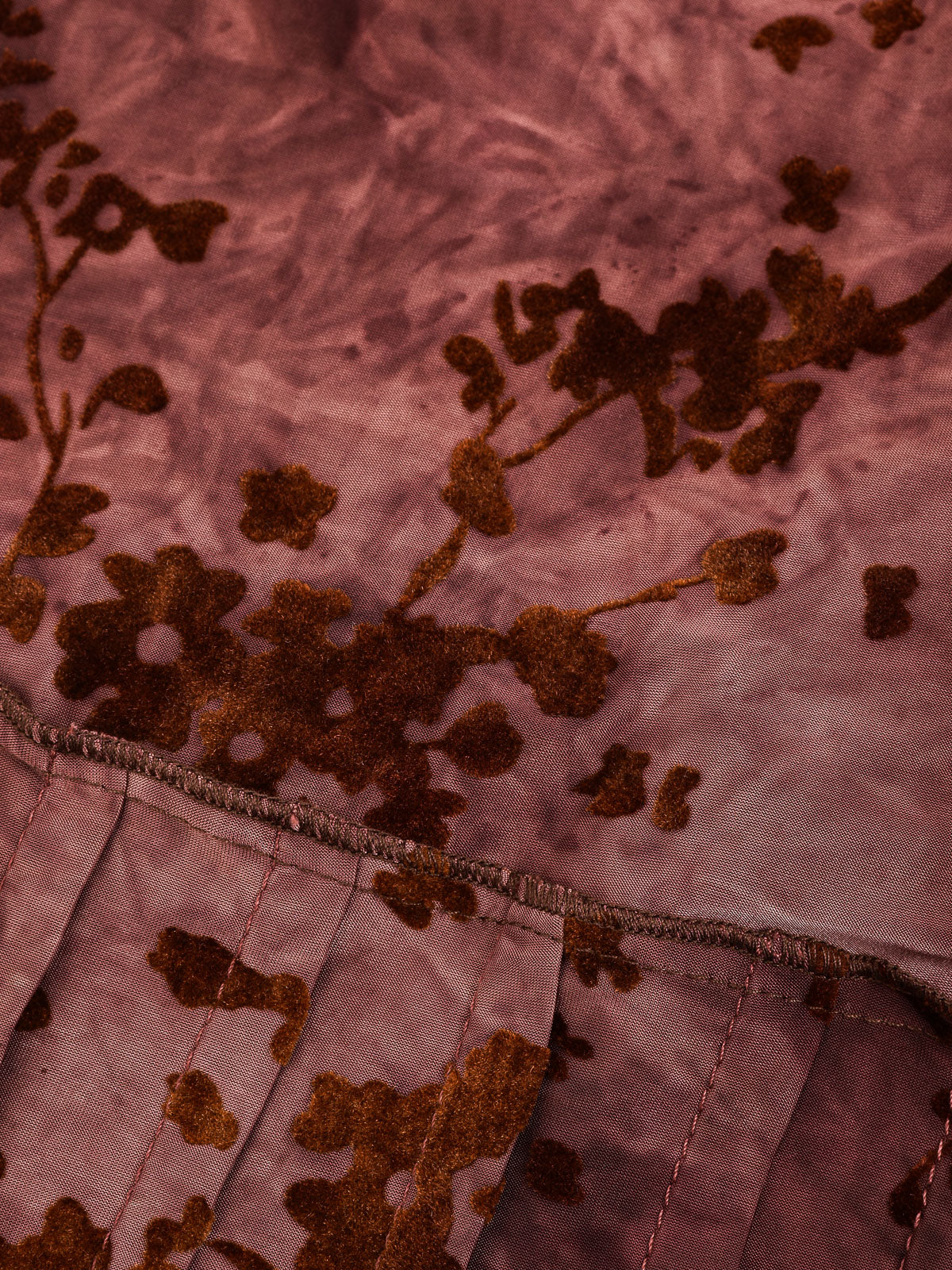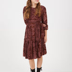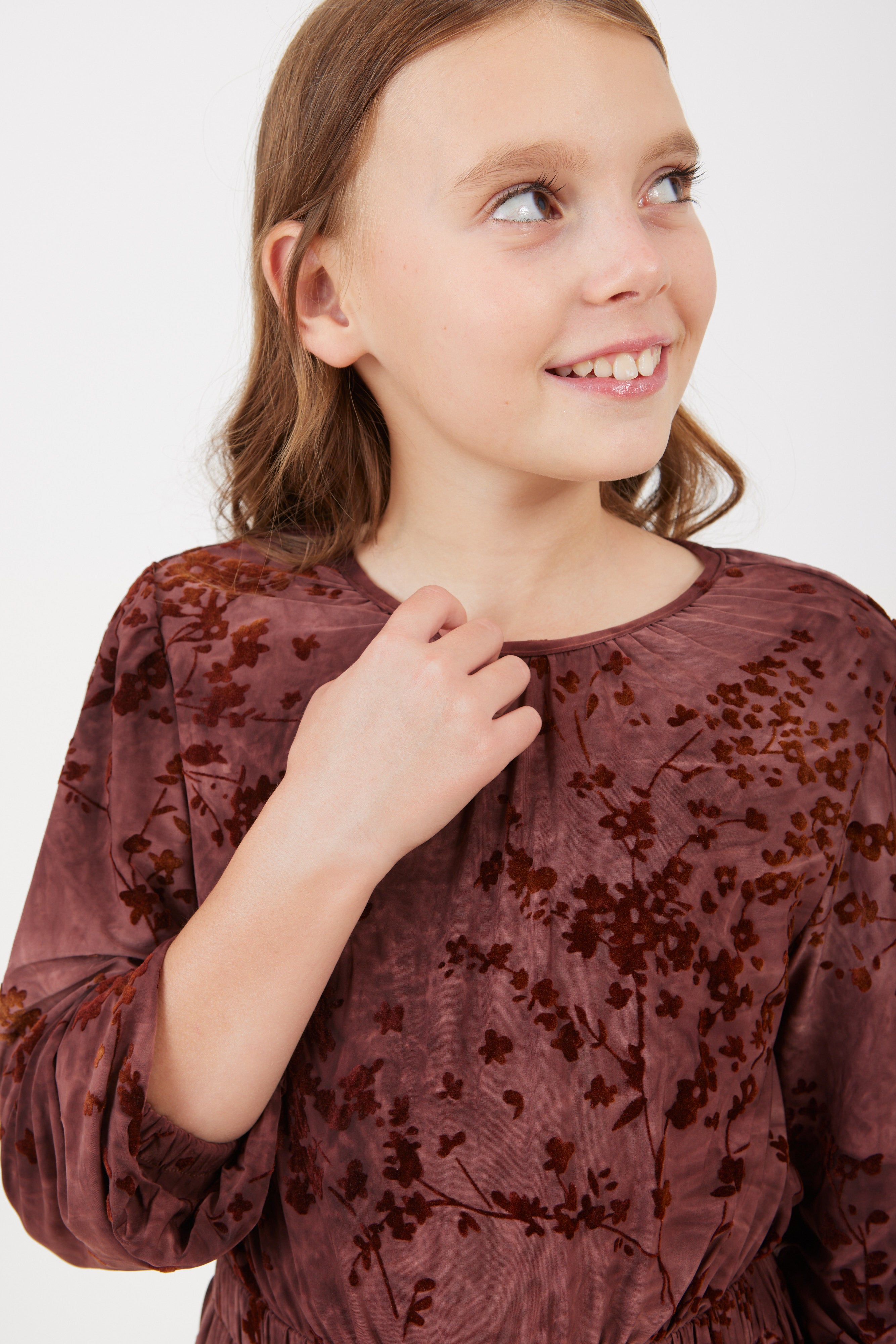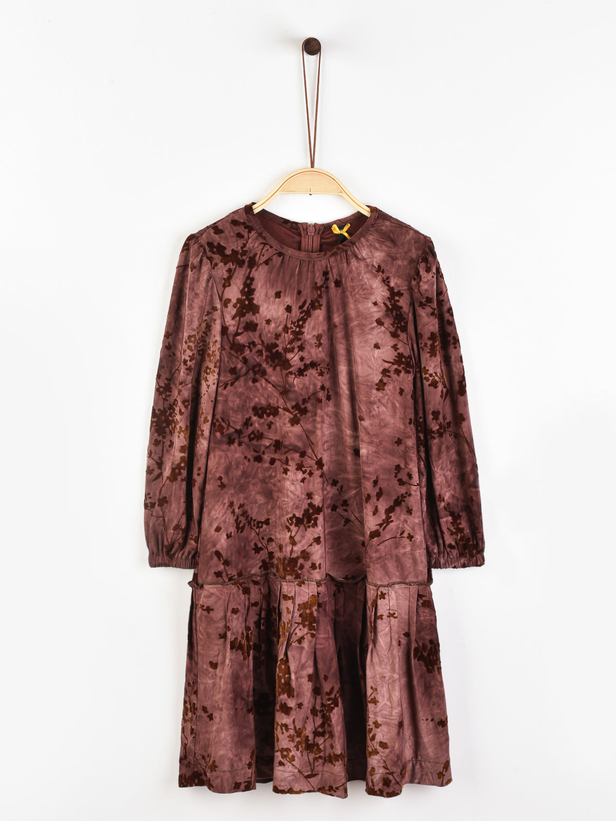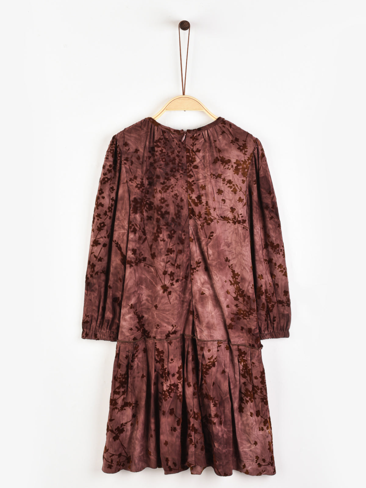 שמלה עם פרחים מקטיפה - בורדו