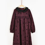 שמלה פרחונית עם צווארון קטיפה - בורדו