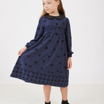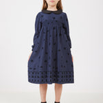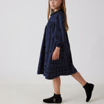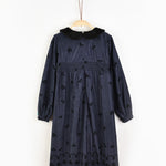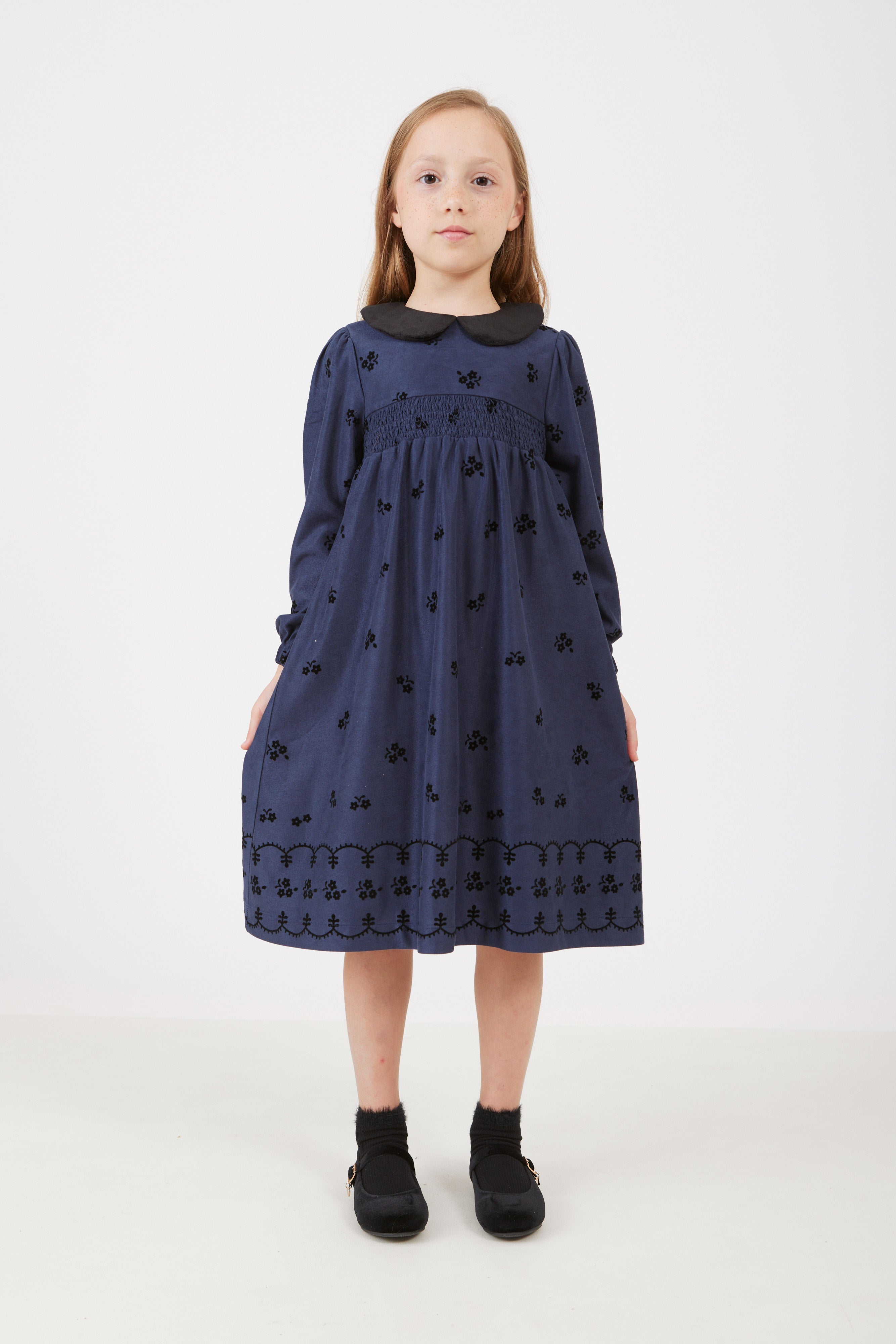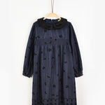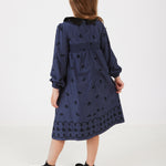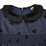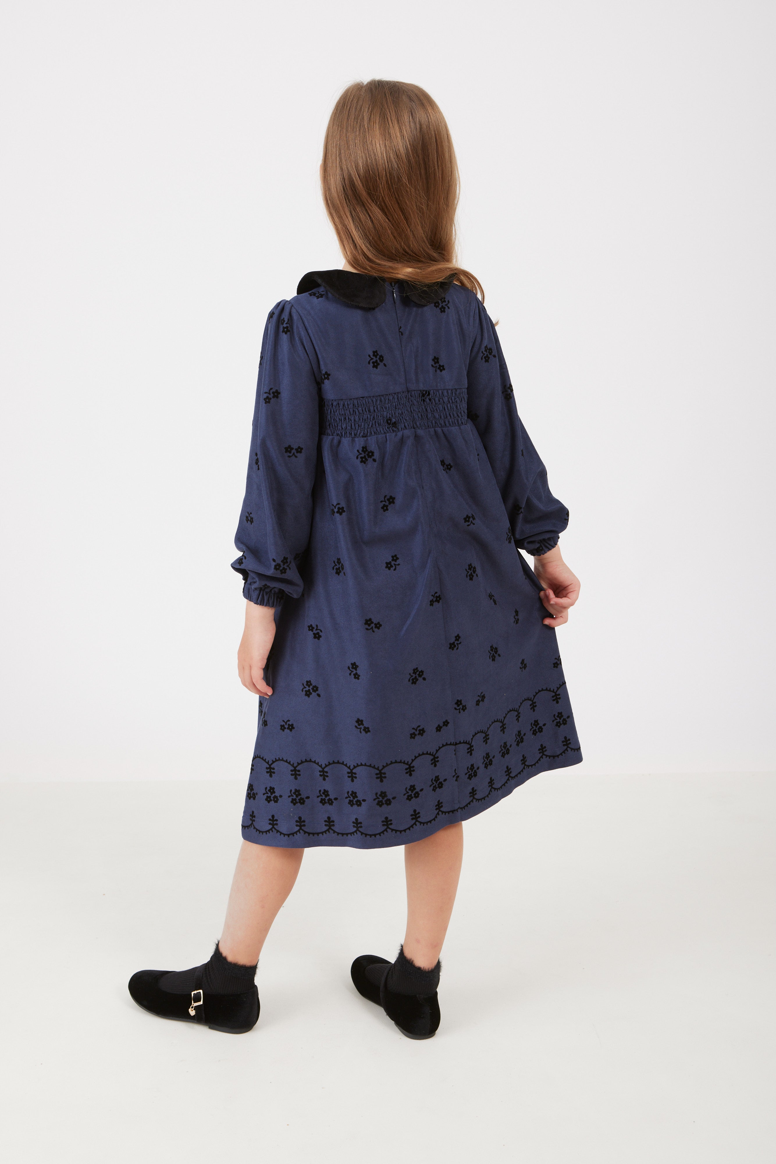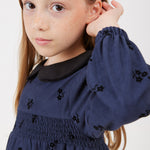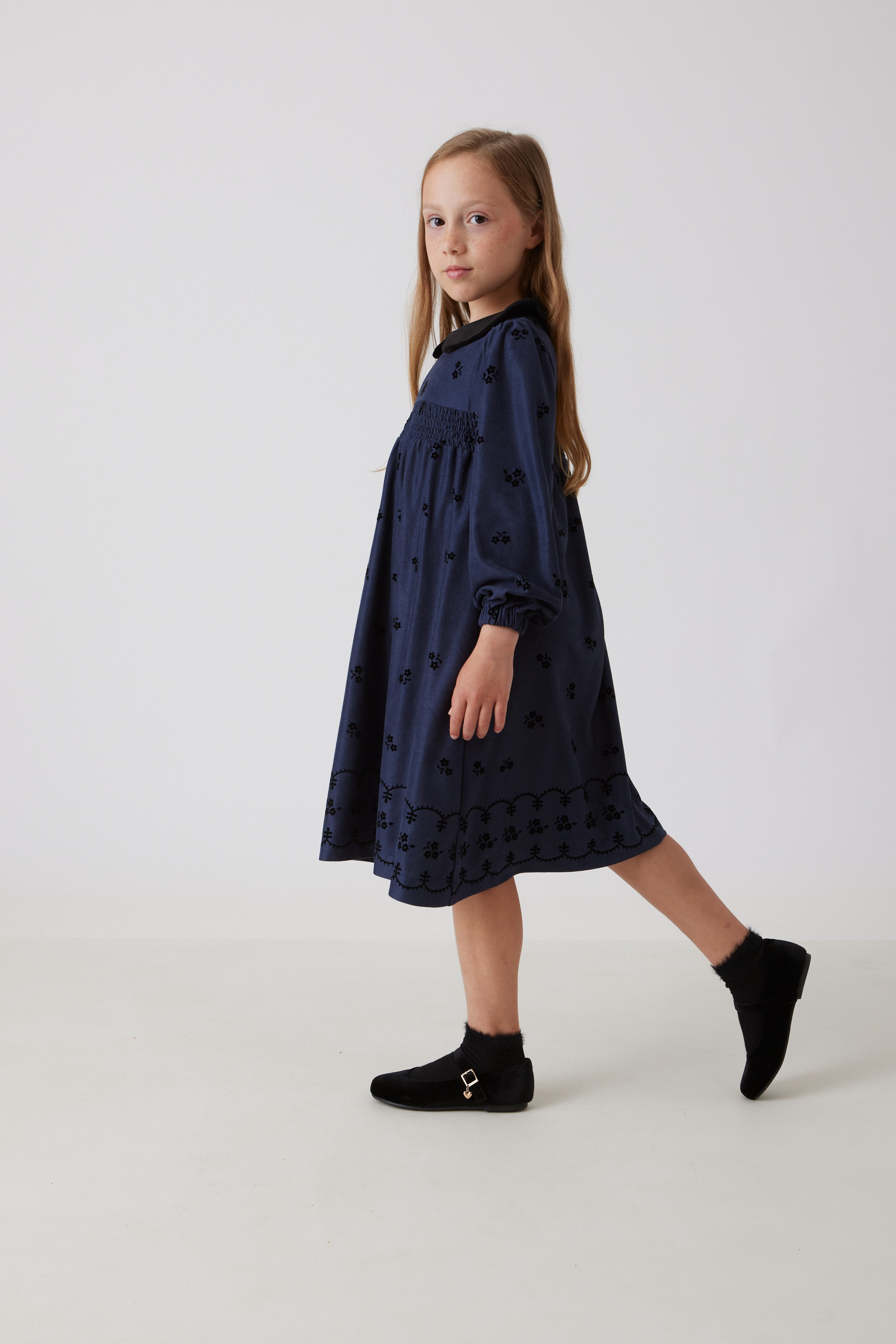שמלה פרחונית עם צווארון קטיפה - נייבי