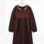 שמלה עם צווארון רקמה - בורדו